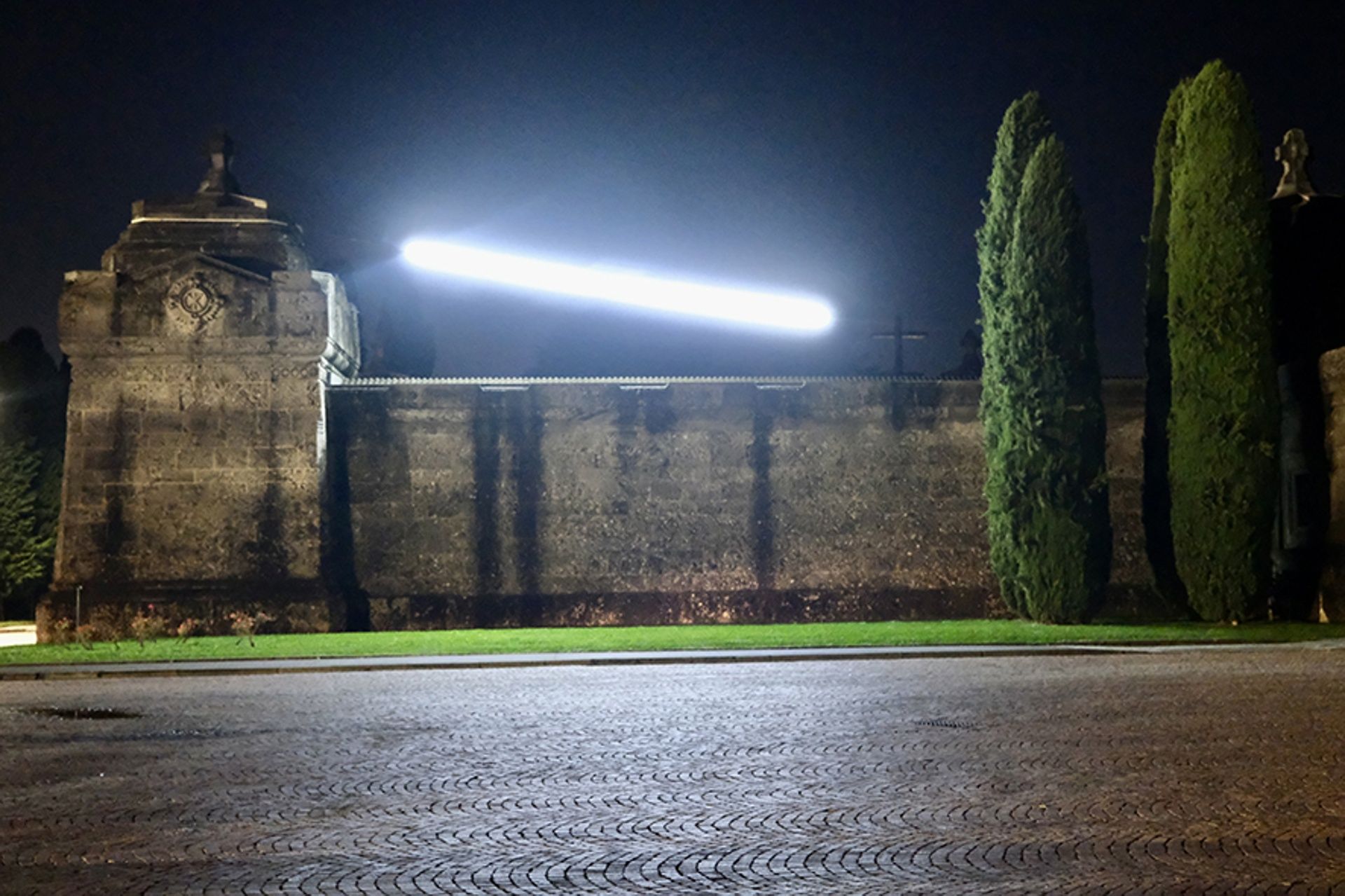Con Shooting Stars, il duo artistico Antonello Ghezzi illumina la facciata del cimitero con un’installazione luminosa connessa in tempo reale al cielo mediterraneo grazie alla collaborazione con l’Istituto Italiano di Astrofisica. Ogni volta che una meteora attraversa il cielo, una linea di luce si accende sulla facciata: un gesto poetico che unisce scienza, desiderio e memoria. Un invito a guardare il cielo, ricordare e sognare, nel segno della continuità tra vita e infinito.