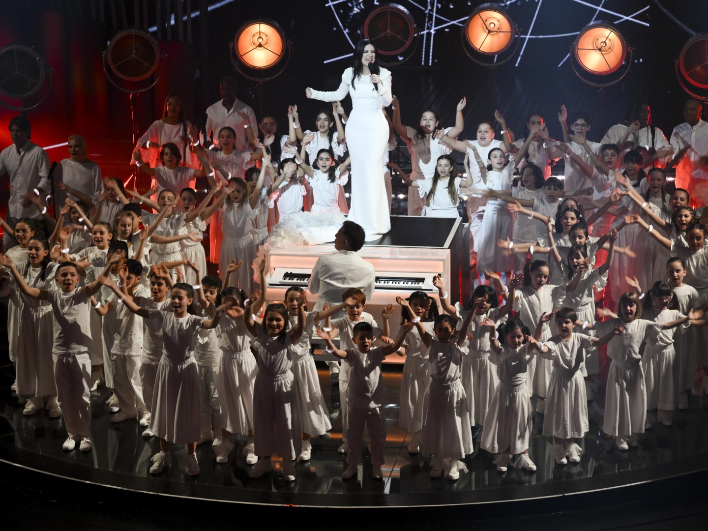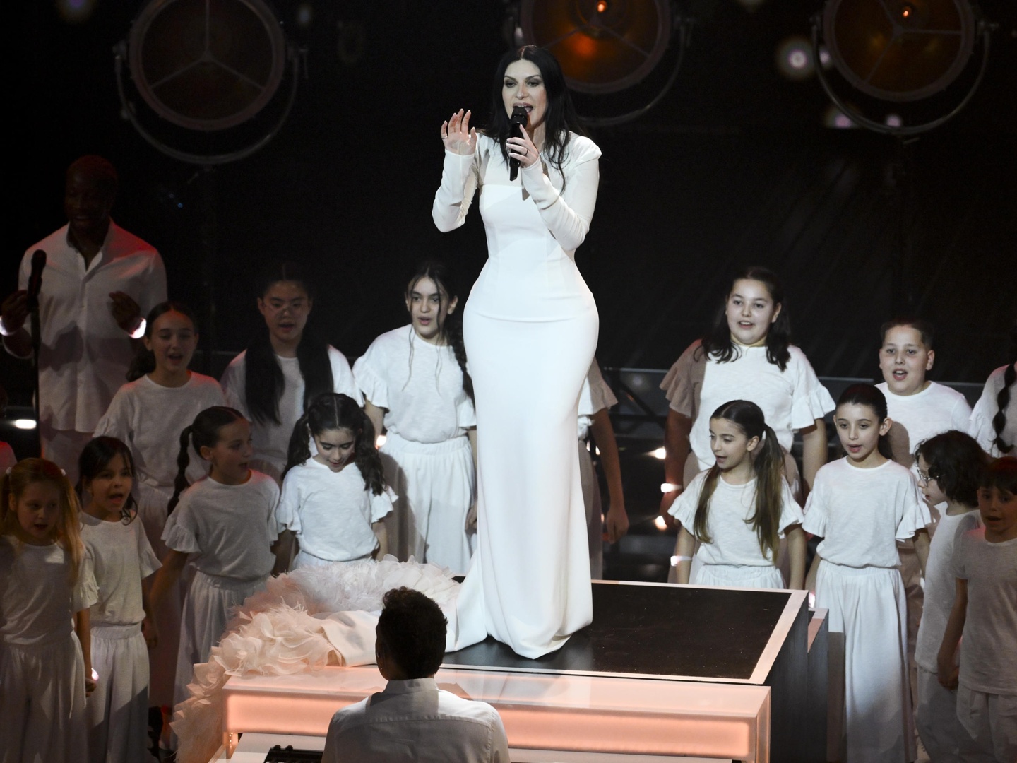21.46: un momento estremamente toccante al rientro dalla pubblicità. Laura Pausini canta «Heal the world» accompagnata dal «Piccolo Coro dell’Antoniano». Un inno alla pace, mentre sullo schermo scorrono le immagini di varie guerre in giro per il mondo. «Vogliamo tutti un mondo senza guerre, e lo vogliamo per loro», dice Pausini riferendosi ai bambini che hanno cantato con lei. «Grazie per questo momento», risponde Carlo Conti.