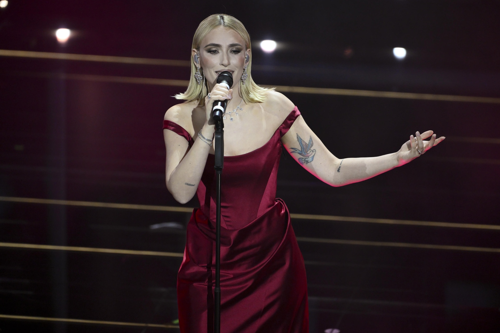 23.40: dopo un viaggio sulla nave Costa Toscana, dove Max Pezzali si è esibito con un medley di alcuni suoi grandi successi per la gioia del pubblico. Quindi si torna alla gara: è il momento di Serena Brancale con «Qui con me». La serata prende un ritmo sostenuto, il decimo cantante è Samurai Jay con «Ossessione»: durante l’esibizione Belen Rodriguez torna sul palco dell’Ariston, nelle vesti di special guest, per pronunciare un verso della canzone.