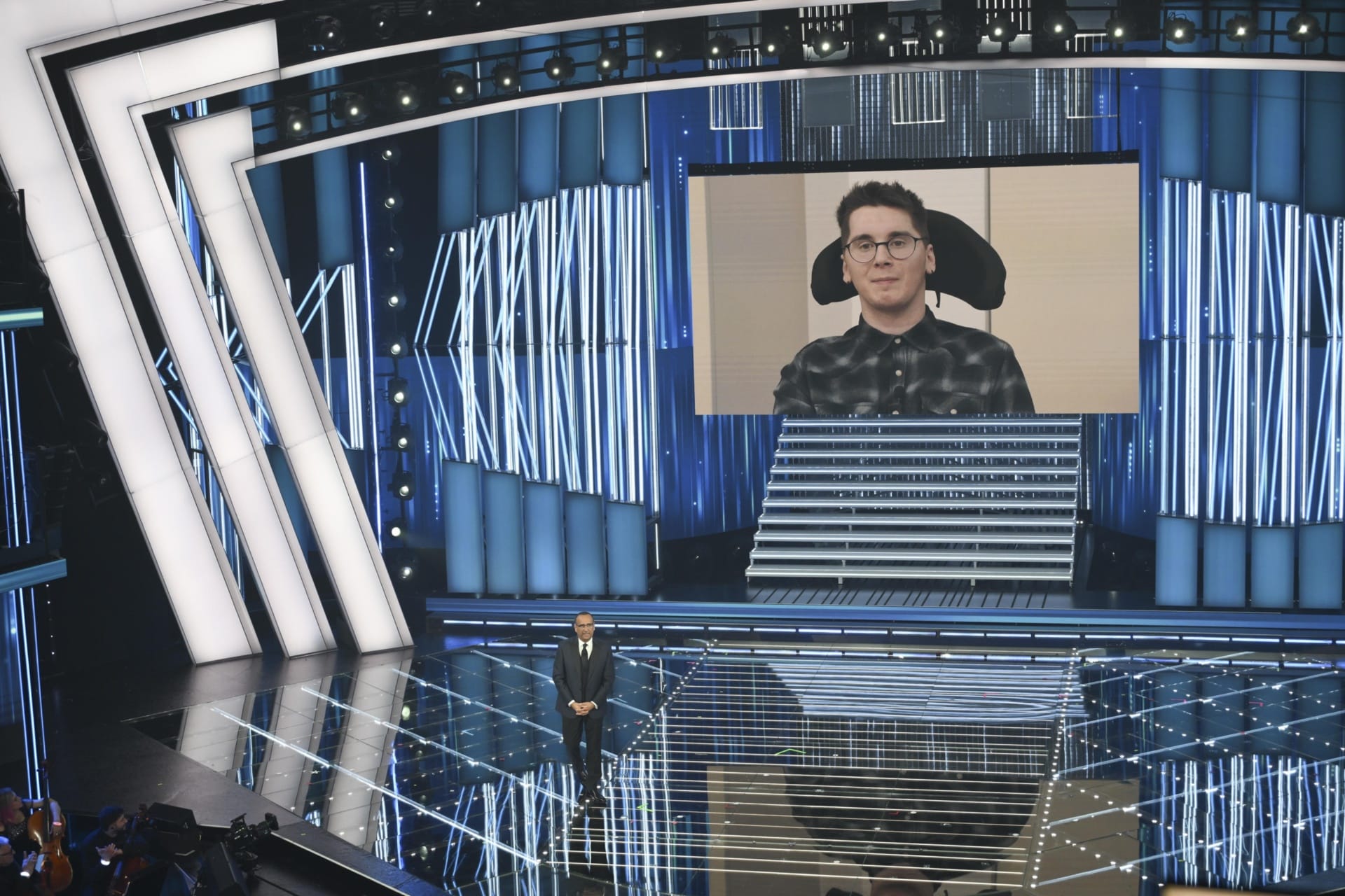 22.00: Carlo Conti presenta un ospite davvero speciale, in collegamento da Genova c’è Paolo Sarullo, il giovane di Albenga che è stato aggredito, mentre era in monopattino, da quattro adolescenti che hanno provato a rapinarlo, è caduto a terra e da allora è tetraplegico: «Stop alla violenza sui giovani», dice in collegamento. Racconta che Olly è il suo cantante preferito, accenna Balorda Nostalgia e si rivolge ai suoi aggressori: «Non dovrebbe più accadere a nessuno». E quando Carlo Conti lo invita a non mollare, replica con un sorriso: «Non si molla».