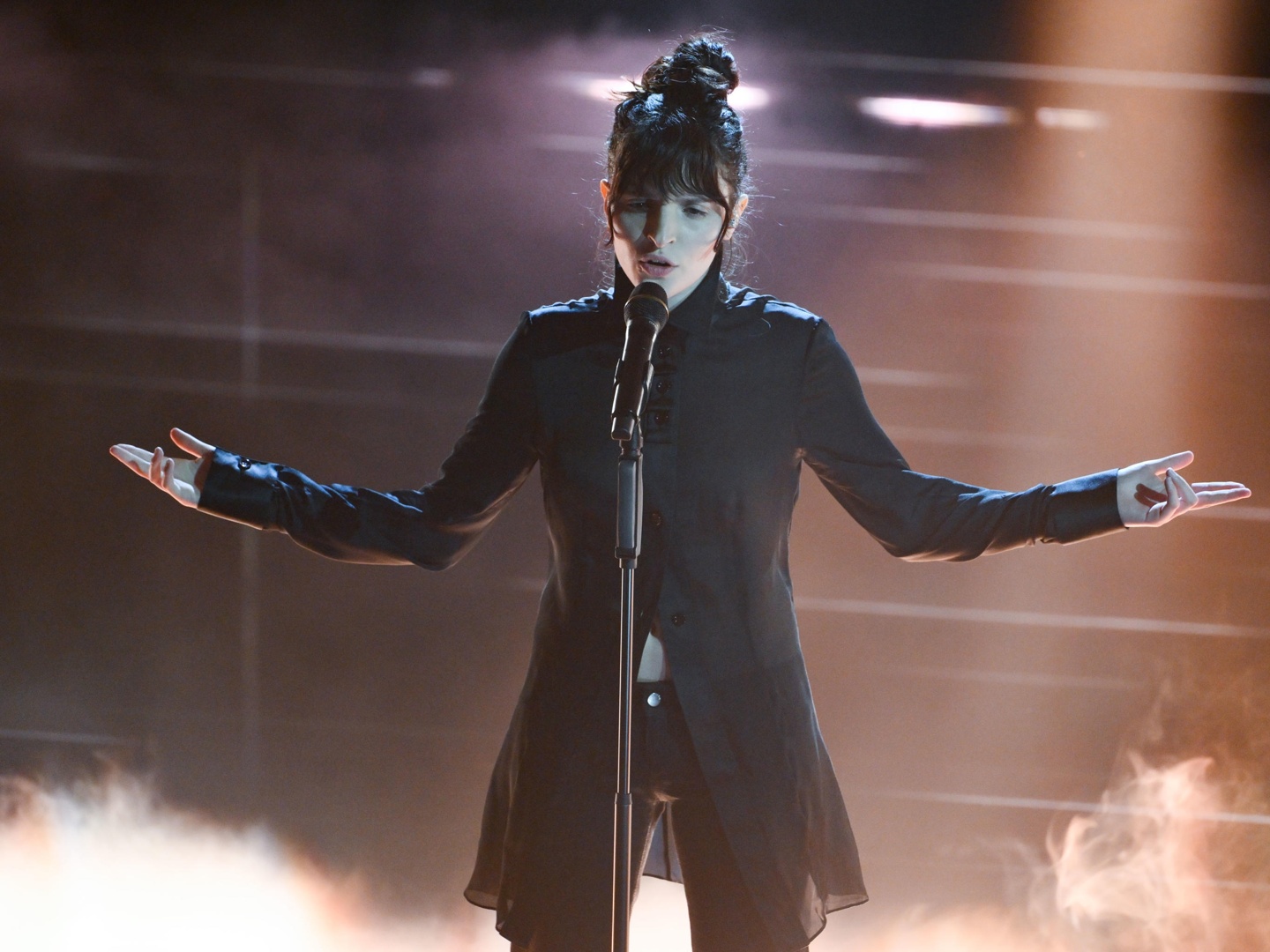 00.01: altro bis di esibizioni, una dietro l'altra. Prima Arisa con la sua «Magica favola», in testa nel sondaggio sul nostro sito. Subito dopo ecco sul palco Michele Bravi con «Prima o poi», quindi Luché con «Labirinto».