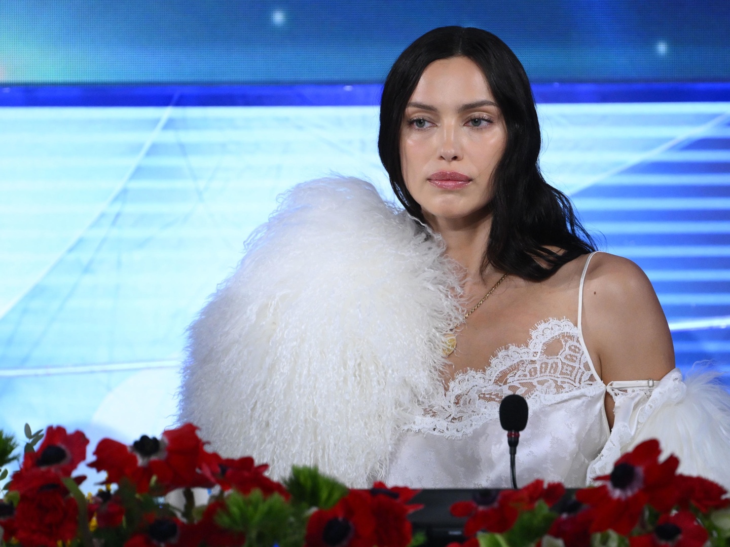 21.12: Carlo Conti presenta Irina Shayk, co-conduttrice della serata: «Buonasera Italia, buonasera Sanremo. Sono felicissima di essere qui, grazie mille». Conti le chiede: «Come mai hai accettato di venire?», e lei: «Carlo, sono qui per te. Chi amo della musica della musica? Ovviamente te», rivolgendosi a Laura Pausini. Applausi e risate in sala. Insieme, i tre presentano il secondo cantante della serata: Leo Gassmann con «Naturale».