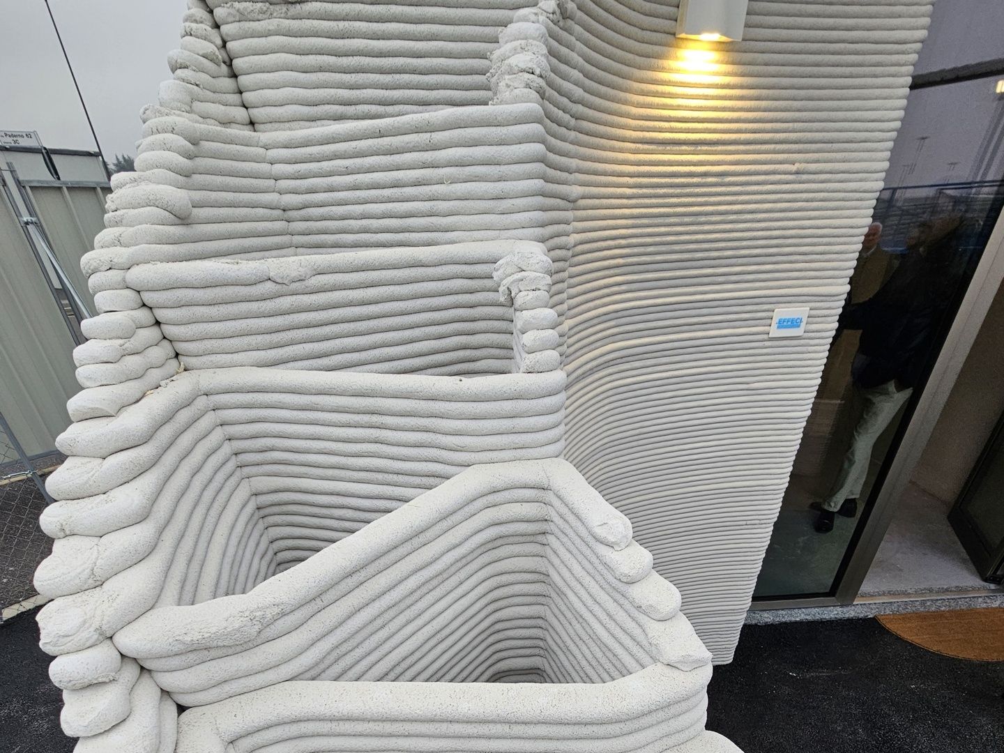 Il progetto nasce come modulo di servizio nel nuovo parco logistico dell’aeroporto di Orio al Serio. A realizzarlo la Edilco di Martinengo, con il supporto della romagnola Wasp – leader nel settore della stampa, tradizionale e 3d – e in collaborazione con Sacbo. Quaranta ore di stampa e venti giorni complessivi per la costruzione, che ha visto lavorare fianco a fianco la tradizione edilizia orobica, per la miscelazione del materiale, e le macchine all’avanguardia operate dai tecnici Wasp (tre sul posto).
