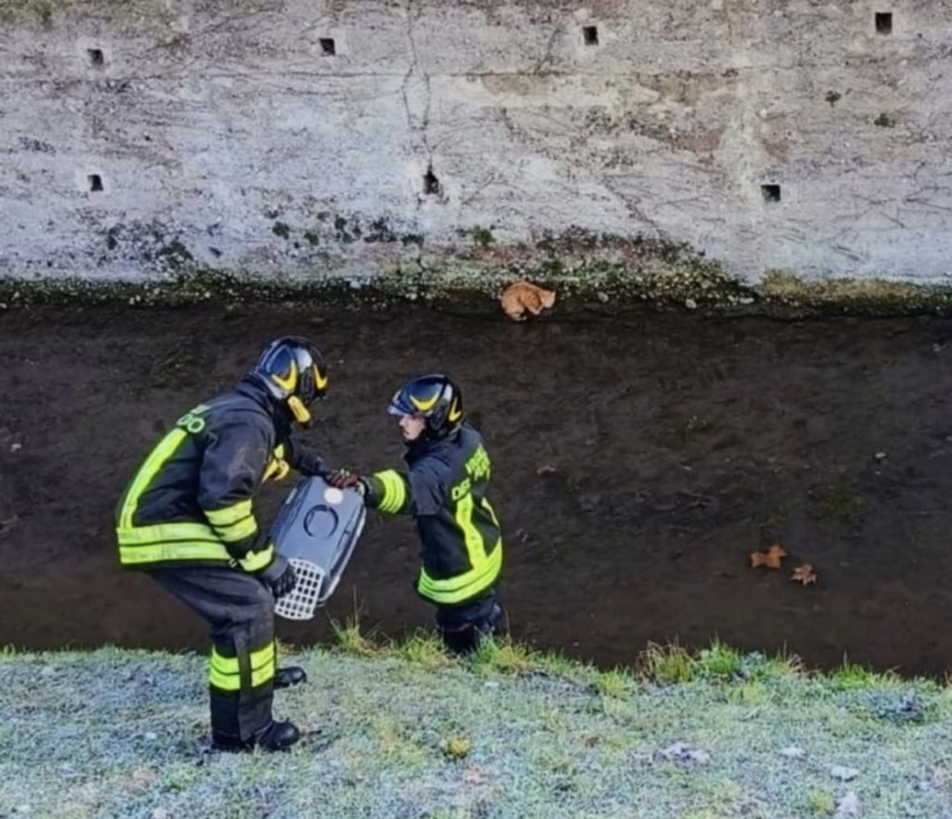 Gattino intrappolato nel fossato, salvo grazie ai Vigili del fuoco