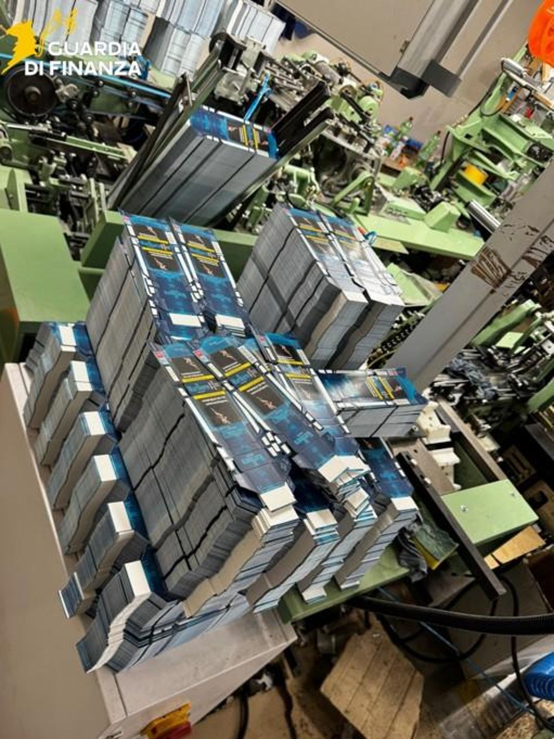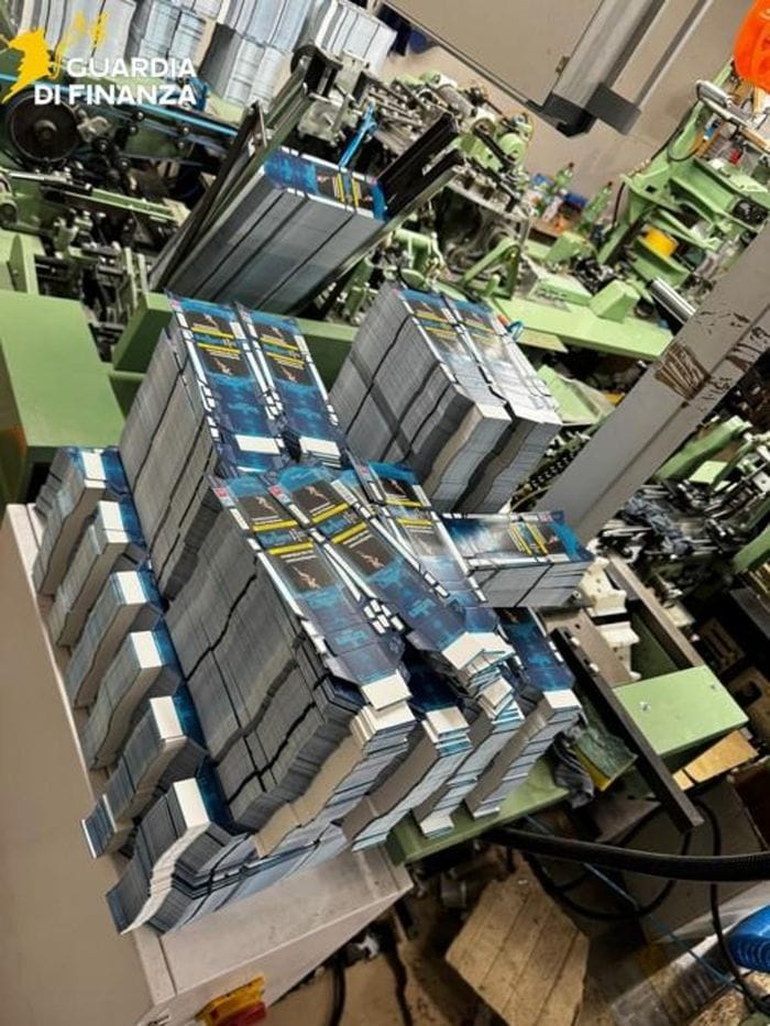 I NUMERI. Oltre 530mila pacchetti pronti e una produzione da un milione al giorno. Capannone schermato, generatori e videosorveglianza per eludere i controlli. Due arresti e 12 lavoratori in nero.