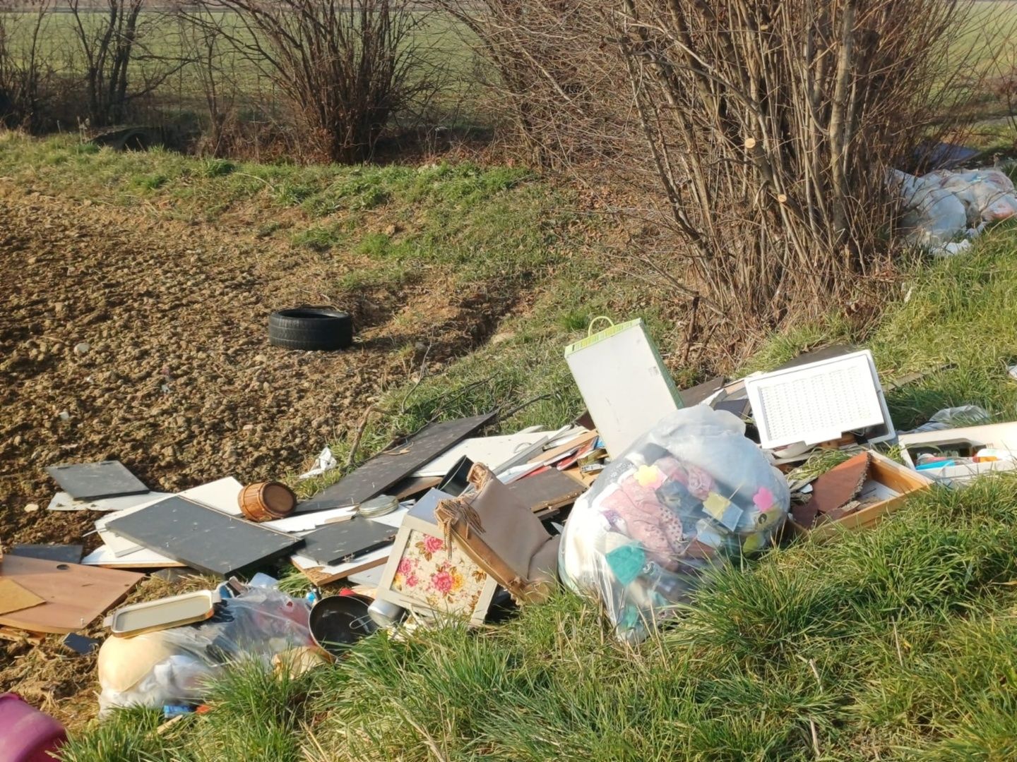 Laterizi, sacchi, gomme: la campagna costellata di rifiuti abbandonati