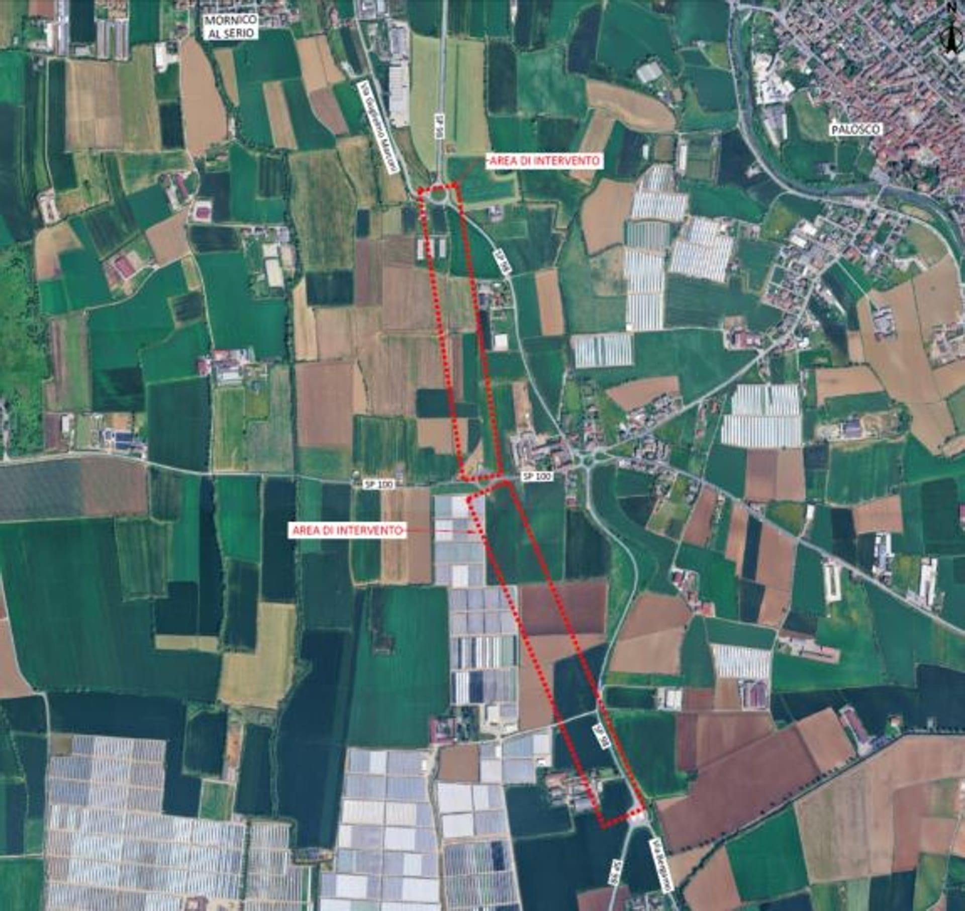 Il tracciato avrà un andamento prevalentemente nord-sud e fungerà da collegamento tra tre rotatorie già esistenti. Il progetto prevede due nuovi tratti stradali: il tratto nord unirà la rotatoria tra SP98 e via Guglielmo Marconi con una rotatoria centrale. Il nodo centrale sarà il punto di connessione con la SP100 e il tratto sud collegherà la rotatoria centrale con quella situata all’incrocio tra SP98 e via Bergamo. Questa configurazione consentirà di razionalizzare i flussi di traffico, spostando parte dei mezzi pesanti fuori dai centri abitati e migliorando la sicurezza stradale.