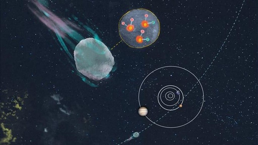L'acqua più diffusa sulla Terra è composta da un atomo di ossigeno e da due atomi di idrogeno che al loro interno hanno un solo protone. Nell'a cqua della cometa , invece, un'alta percentuale delle molecole d'acqua contiene deuterio , una forma di idrogeno che contiene un protone più un neutrone. Queste forme più pesanti di acqua esistono anche sulla Terra, ma in quantità molto inferiori rispetto a quelle osservate nella cometa 3I/Atlas.
