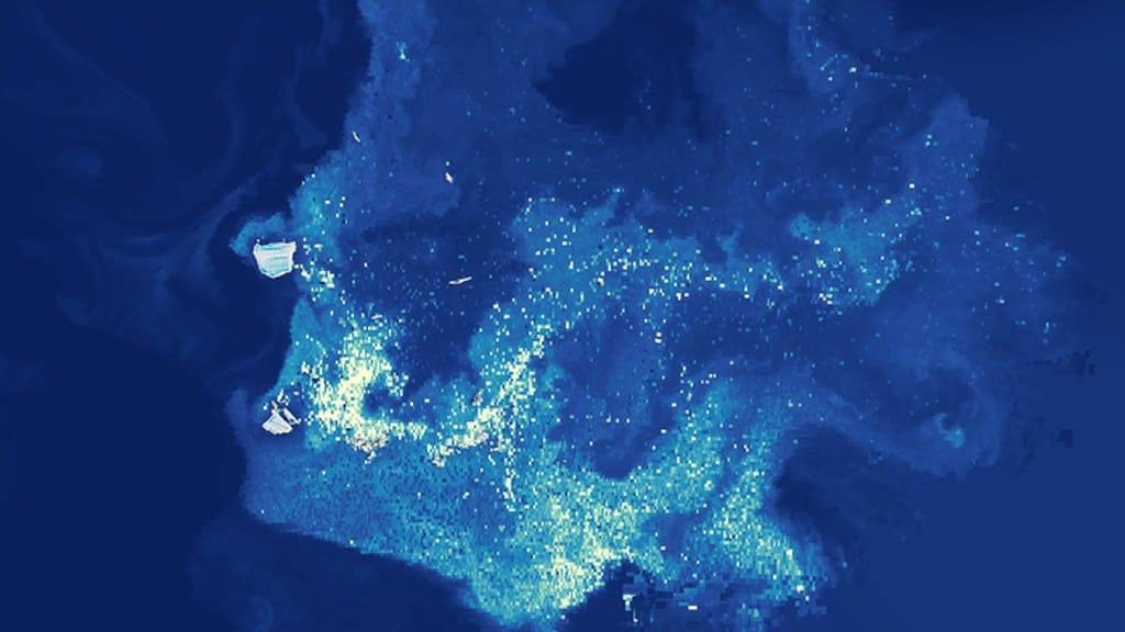 Il fitoplancton costituisce la base della rete alimentare marina , produce fino a metà dell'ossigeno presente sulla Terra e funge anche da fondamentale pompa di carbonio , trasferendo la CO2 atmosferica nelle profondità oceaniche. La sua comparsa in grandi quantità è stata rivelata agli occhi dei satelliti dalle ampie scie di clorofilla , il pigmento che permette alle microalghe di realizzare la fotosintesi , che si avvolgono attorno ai frammenti persi dall'iceberg nel suo percorso.