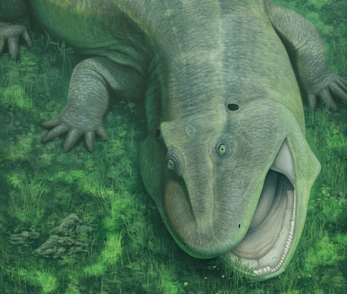 Scoperto un antico erbivoro con la mandibola contorta e denti rivolti di lato