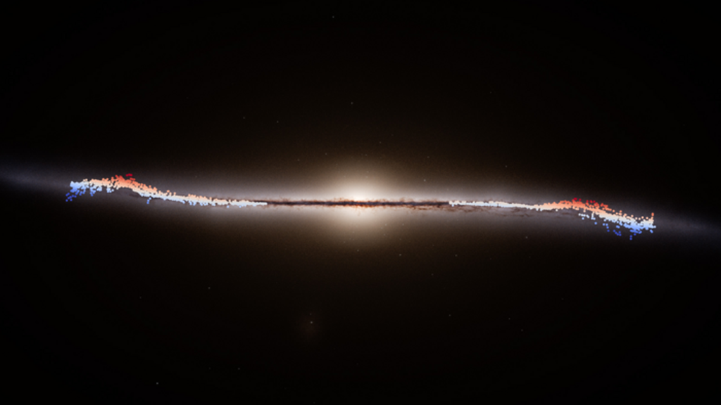 Da circa un secolo sappiamo che le stelle della nostra galassia ruotano attorno al suo centro e Gaia ne ha misurato la velocità e i moti propri. Dagli anni '50, inoltre, sappiamo che il disco della Via Lattea è deformato, e nel 2020 Gaia ha scoperto che questo disco oscilla nel tempo, con un movimento simile a quello di una trottola.