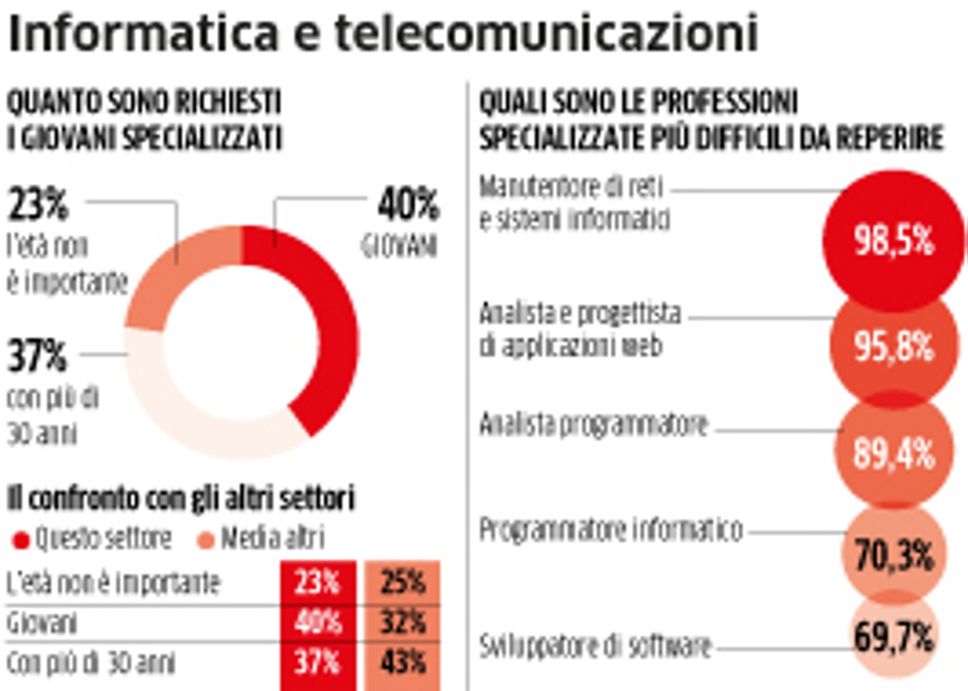 Ecco una prima spiegazione alla difficoltà di reperimento. Il famoso mismatch di cui si lamentano molto i nostri imprenditori in una ricerca su tre, raggiunge addirittura quasi il 50% dei casi, per un profilo su due, quando si tenta di pescare fra giovani under 25, con picchi che superano anche il 60% quando si guarda alle competenze o professioni più coinvolte nell’Industria 4.0. C’è poi anche un altro aspetto che arriva comunque a un importante, quanto altrettanto sorprendente 41% e che mette in evidenza una «inadeguata preparazione» di chi esce dai percorsi scolastici o formativi.