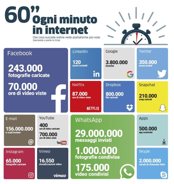 Facciamo un esempio? Su Facebook, ogni 60 secondi, vengono pubblicati 510.000 commenti, aggiornati 293.000 “status”, caricate 243.000 foto (Se ti incuriosiscono questi numeri e vuoi vedere come evolvono, salvati questo link di Zephoria e consultalo periodicamente). E stiamo prendendo in considerazione una sola piattaforma. E contenuti generati da persone normali, non necessariamente da aziende.