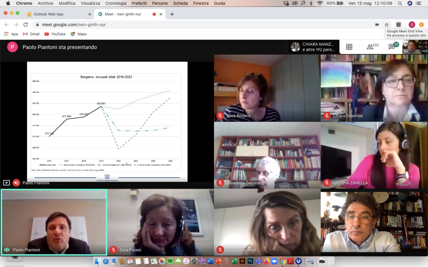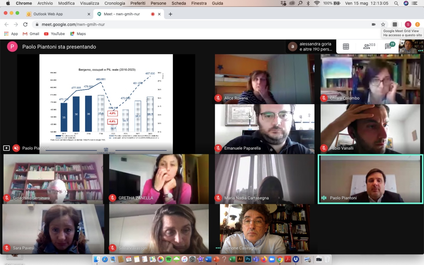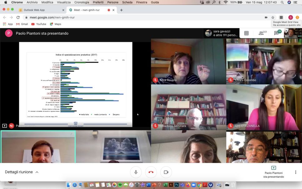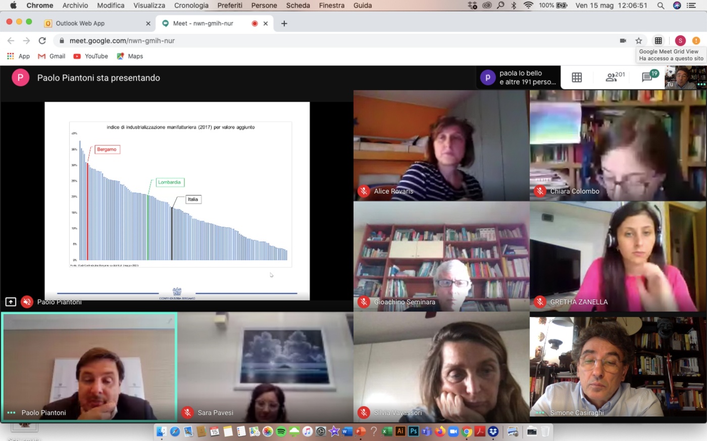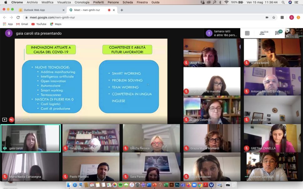 La tavola rotonda ha presentato i progetti elaborati dagli studenti, una sintesi (i lavori definitivi verranno presentati solo all’esame di Maturità), con schede efficaci degli incontri avuti con gli imprenditori: Gaia Caroli e Alessia Stucchi hanno raccontato dei percorsi, della strategia e dell’alleanza industriale sostenute in vista della riconversione produttiva di RadiciGroup, Santini e Plastik per la produzione insieme di mascherine sanitarie e camici per i medici impegnati all’Ospedale Papa Giovanni XXIII di Bergamo nella lotta contro il Covid-19. Un esempio – hanno spiegato Chiara Ferraris, Paola Santini e Simone Rivellini - di come la collaborazione fra imprese con specializzazioni e pezzi di tecnologie diverse possa diventare, una volta ricombinate, anche modello di possibile cooperazione industriale in un futuro non di emergenza, ma di mercato vero.