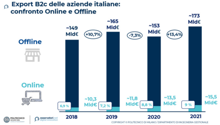 Il valore dell’export online dell’industria italiana