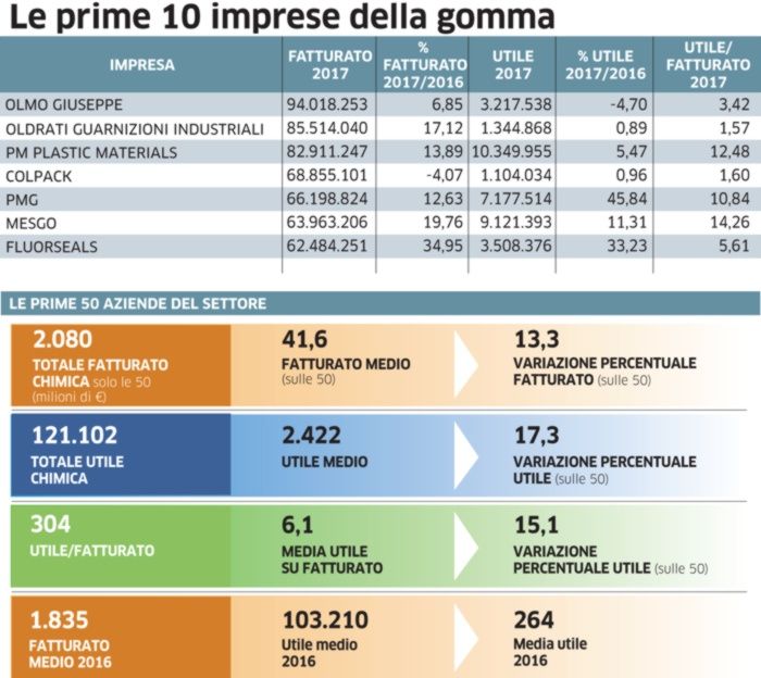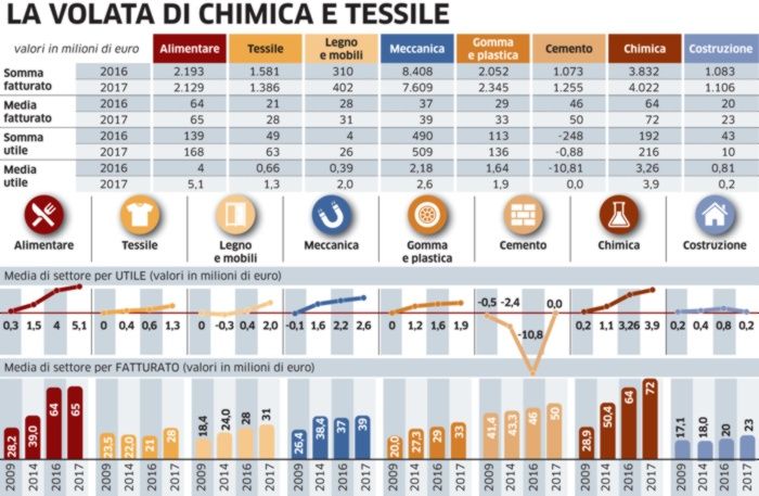 La fotografia dei bilanci 2017 dell’economia reale indica anche che Meccanica, Gomma-plastica, Chimica restano i settori portanti del sistema industriale ed economico del territorio, tutti protagonisti soprattutto di una nuova stagione di innovazione e di grande trasformazione organizzativa sia sotto il profilo dei processi di produzione sia del prodotto e dei servizi al mercato.