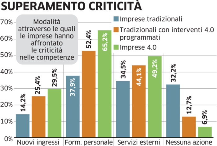 Investire nel personale diventa così l’imperativo categorico delle aziende 4.0. Alla Milestone hanno coniato anche uno slogan per meglio identificare la loro strategia di fare azienda guardando agli uomini: «investors in people». «Per noi è un’ossessione oltre che una priorità. Ma diventa determinante – spiega Diego Cortesi, Ceo di Milestone - solo se si continua a fare formazione. Noi come lo facciamo? Trattando bene i nostri collaboratori. E visto che abbiamo un turnover dell’1% all’anno, direi che ci stiamo riuscendo».
