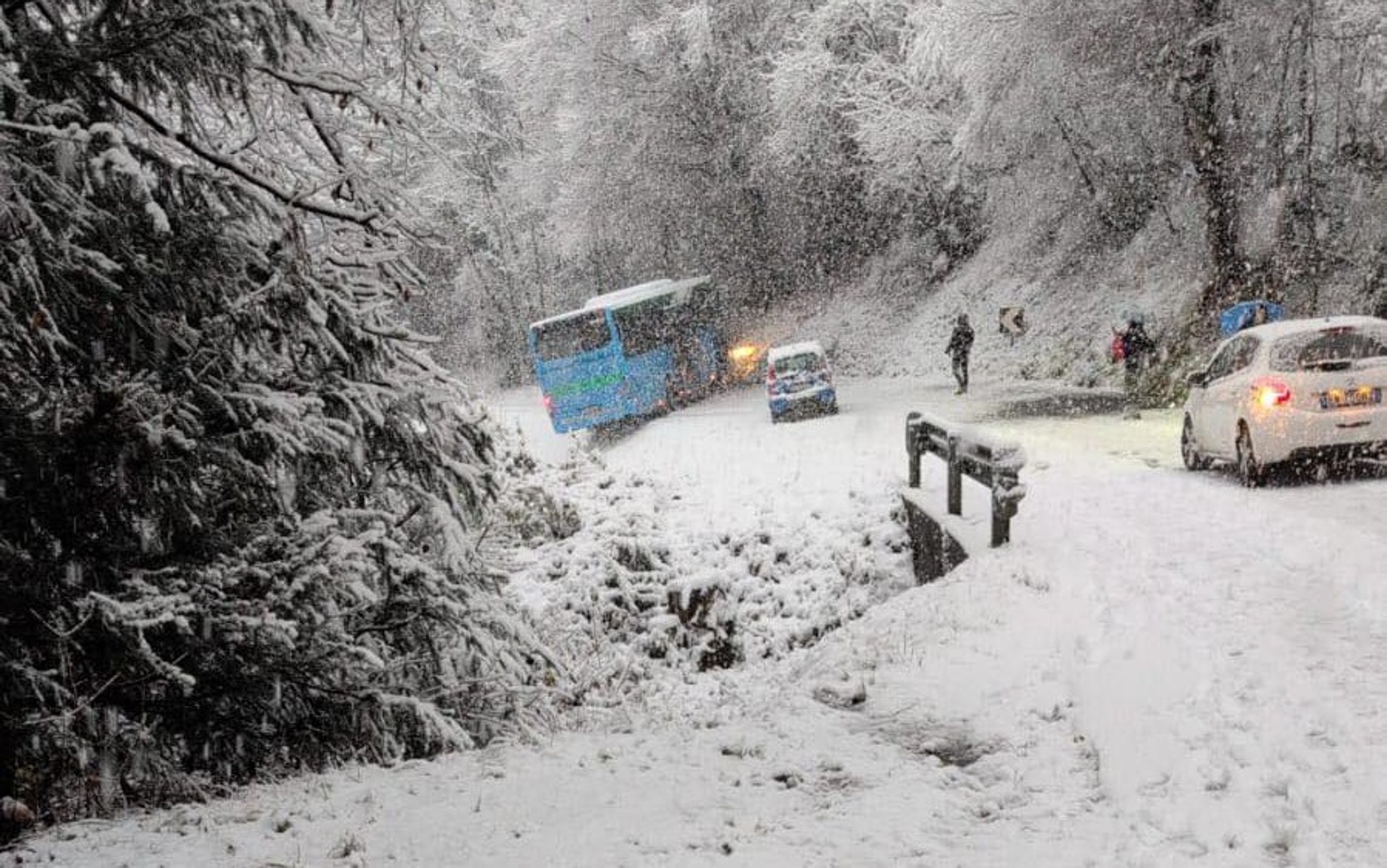 La segnalazione del sindaco di Serina Michele Villarboito: «Anche le alternative alla provinciale 27 sono difficilmente praticabili. Occorre massima attenzione ci sono diverse auto di traverso. E’ come andare sopra il sapone». L’appello: «Le gomme anti neve non bastano, servono almeno le catene».