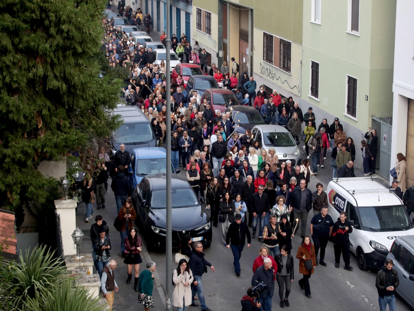La fiaccolata in memoria della 29enne, colpita dall’uomo con almeno 30 coltellate, è stata organizzata dagli abitanti e dai commercianti della zona, che intorno alle 17.30 si sono riuniti intorno alla panchina rossa inaugurata nel 2023 per ricordare tutte le vittime di femminicidio, che si trova proprio a pochi passi dall’abitazione della ragazza in via Iglesias. Ad aprirla lo striscione «Per Pamela e per tutte», mentre da un palazzo ne è stato esposto uno con la scritta «Il possesso uccide». E ancora: «Ciao Pamela», accanto ai mazzi di fiori e ai bigliettini portati in questi giorni. I partecipanti sono stati circa un migliaio.