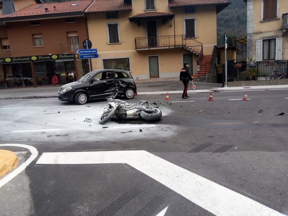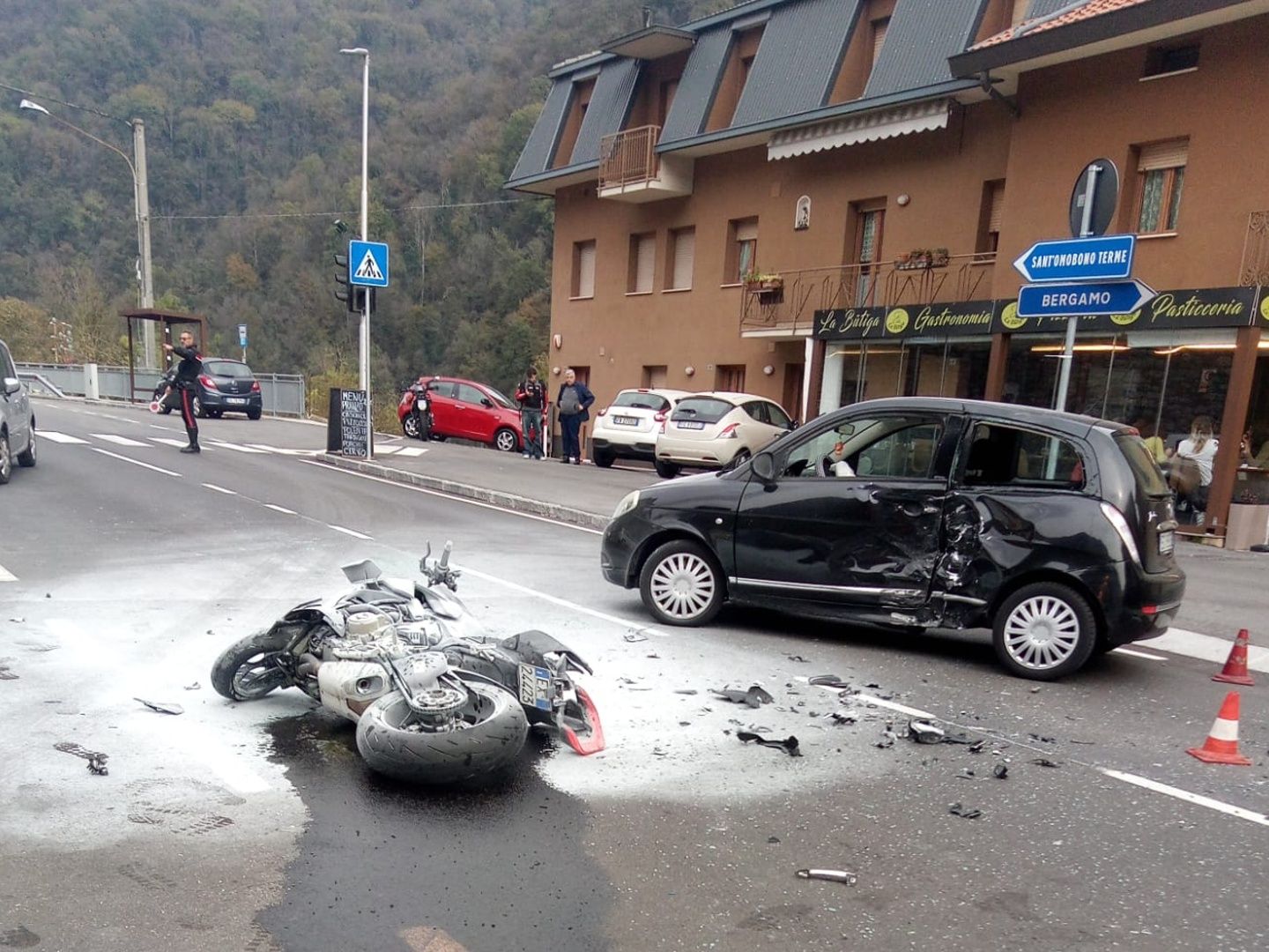 Incidente tra auto e moto a Strozza: 25enne ricoverato al Papa Giovanni