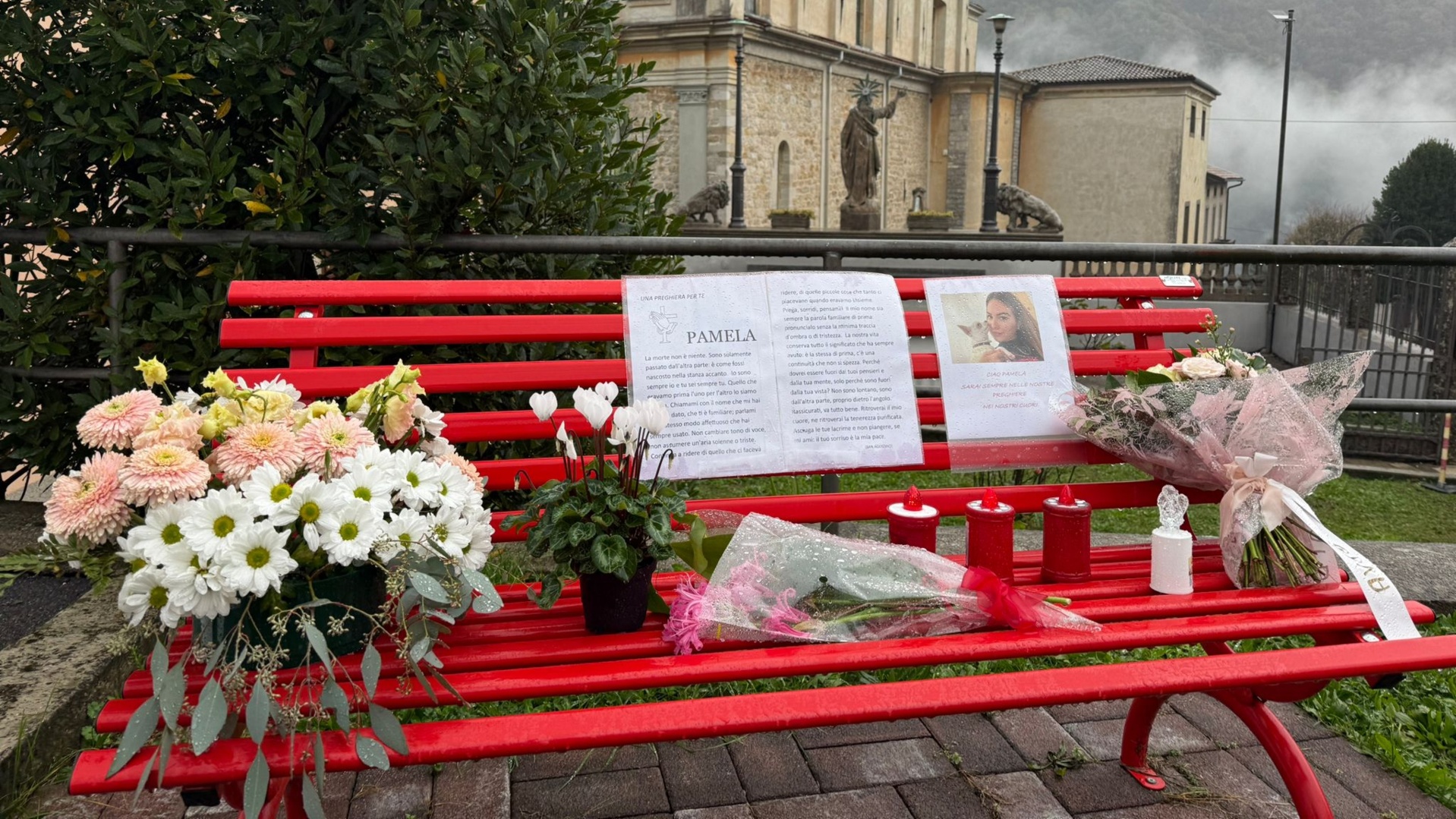 Accanto alla chiesa, una panchina rossa, simbolo della lotta contro la violenza sulle donne, in questi giorni è divenuta luogo di raccoglimento spontaneo. Sulla panchina con una fotografia di Pamela, sono state affisse le parole di Sant’Agostino e una poesia dal titolo «La morte non è niente». Molti cittadini hanno portato qui fiori e lumini.