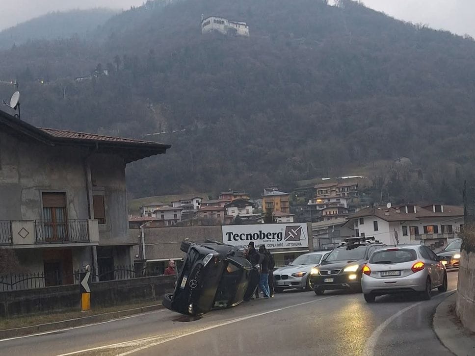 Incidente nel pomeriggio di domenica 1 febbraio alla rotonda di Casnigo, nei pressi di Paganessi auto. Intorno alle 17 una donna di 55 anni, residente a Bergamo, alla guida di una Mercedes GLC, ha perso il controllo del veicolo per cause in via di accertamento.