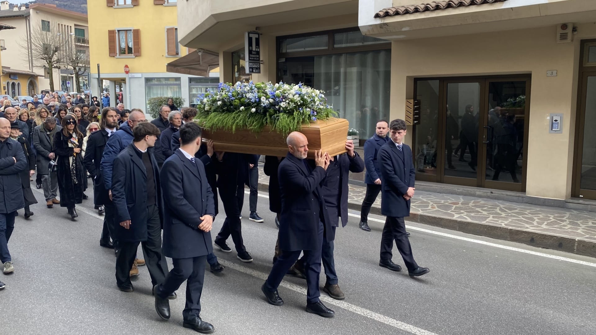 Il feretro di Zambaiti, portato a spalla, ha preso infine la via del cimitero di Leffe, seguito da un lungo corteo.