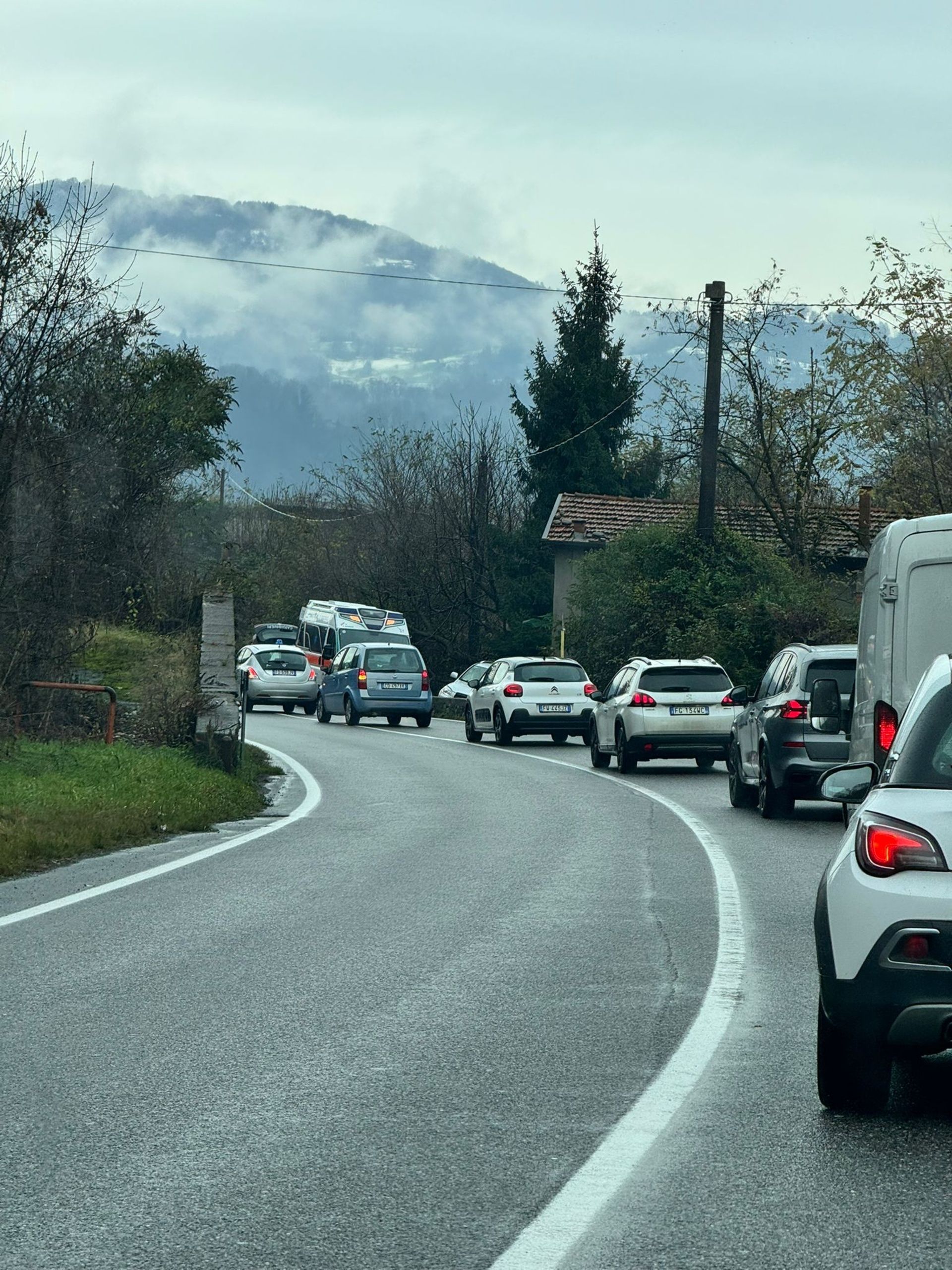 Lunedì 1° dicembre sulla statale 671 a Casnigo due auto si sono scontrate, causando lunghe code ma senza gravi feriti. Una delle vetture è finita in un prato a lato della strada.