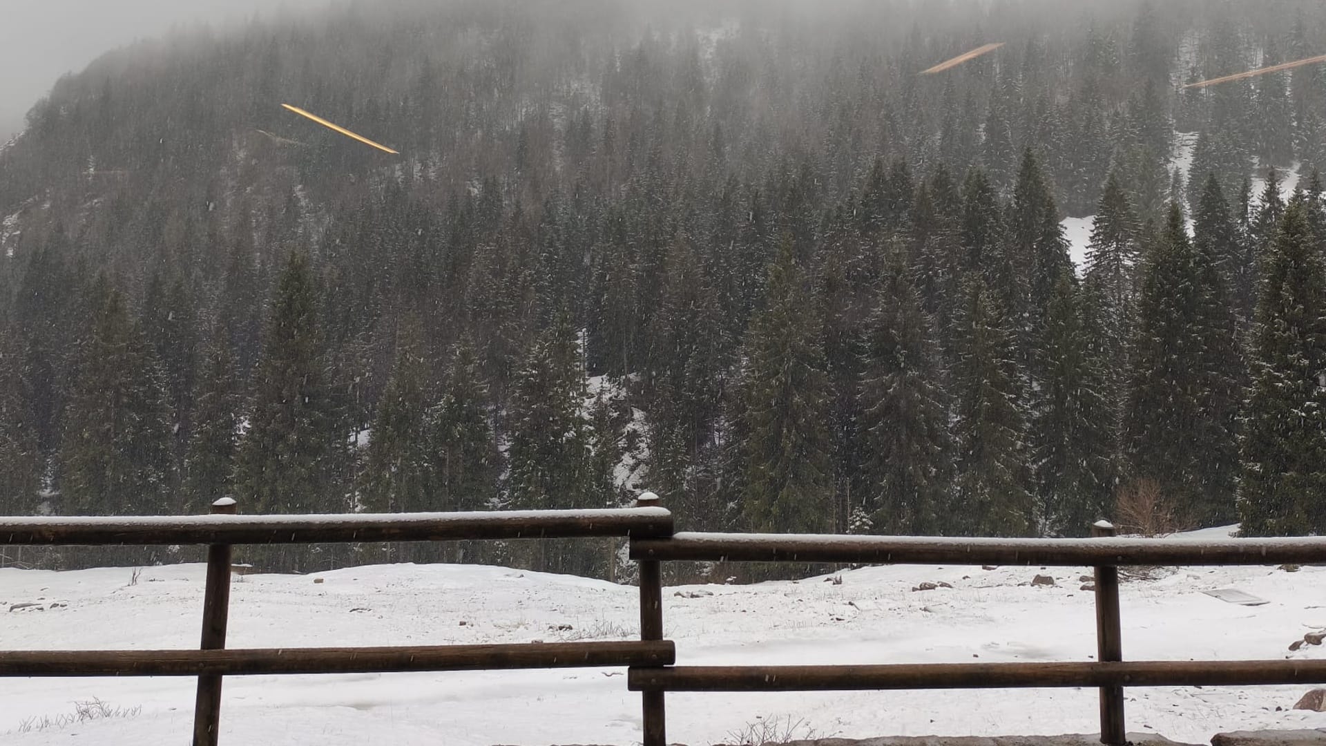 Sabato di pioggia in pianura che si è trasformato in una bella nevicata sulle Orobie sopra i 1.300 metri di quota. Una nevicata fitta che ha subito attaccato facendo ripiombare le valli bergamasche in un’atmosfera decisamente invernale dopo che le alte temperature dei giorni scorsi avevano portato ad ampi squarci di primavera.