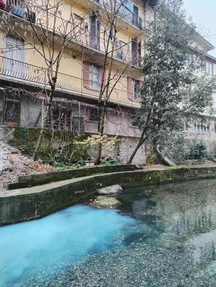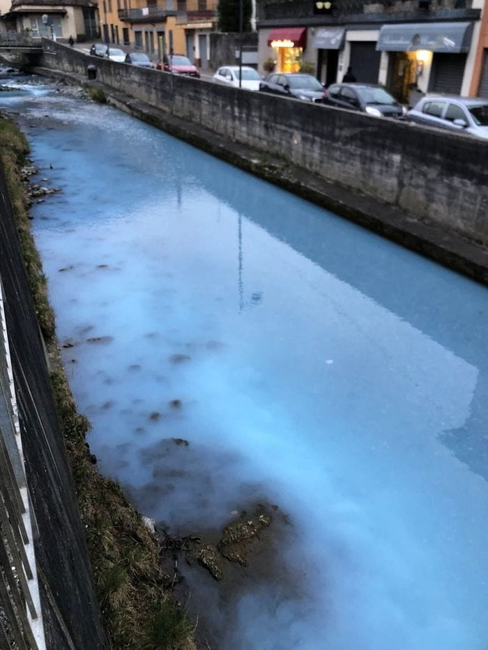 Vertova, il torrente si tinge di azzurro: scatta l’allarme in centro paese