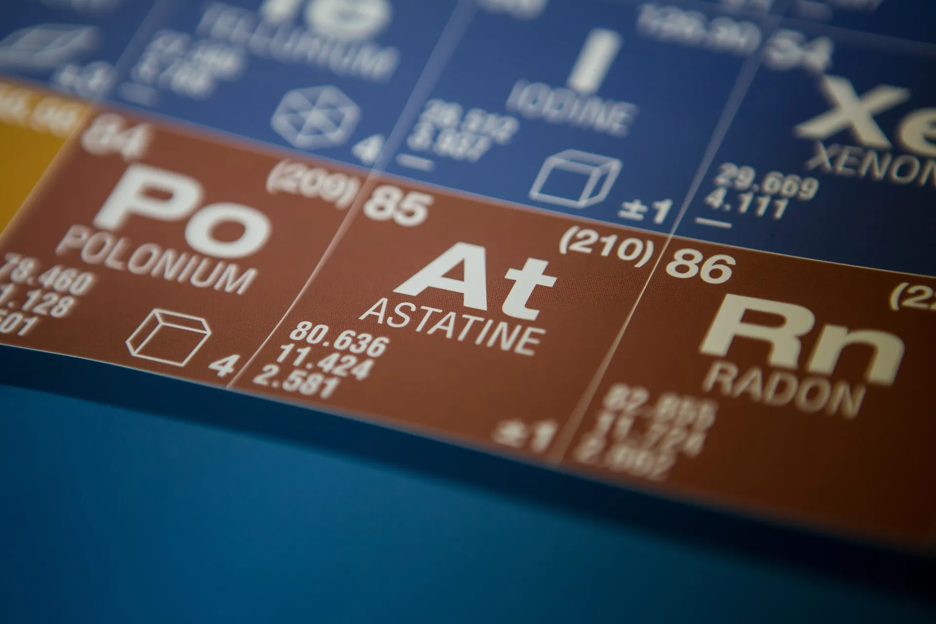 In realtà mi sbagliavo, e di molto. Nessuno di questi elementi si avvicina nemmeno lontanamente alla rarità dell’elemento che sto per introdurvi. Prendiamo l’oro come metro di misura. Incrociando un po’ di dati si può stimare che siano presenti tra i 40 e gli 80 miliardi di tonnellate di oro nella crosta terrestre. In confronto, esistono solo circa 20 grammi di astato nella crosta terreste. Stiamo parlando di una differenza di 15 ordini di grandezza. Tradotto, l’astato è 1.000.000.000.000.000 volte più raro dell’oro. Come è possibile? L’astato, 85esimo elemento della tavola periodica, esiste in natura per pochissimo tempo. Essendo un elemento radioattivo decade dopo poco tempo trasformandosi in polonio e bismuto. Pensate che è così difficile da ottenere in quantità significative che molte delle sue proprietà sono tuttora sconosciute.