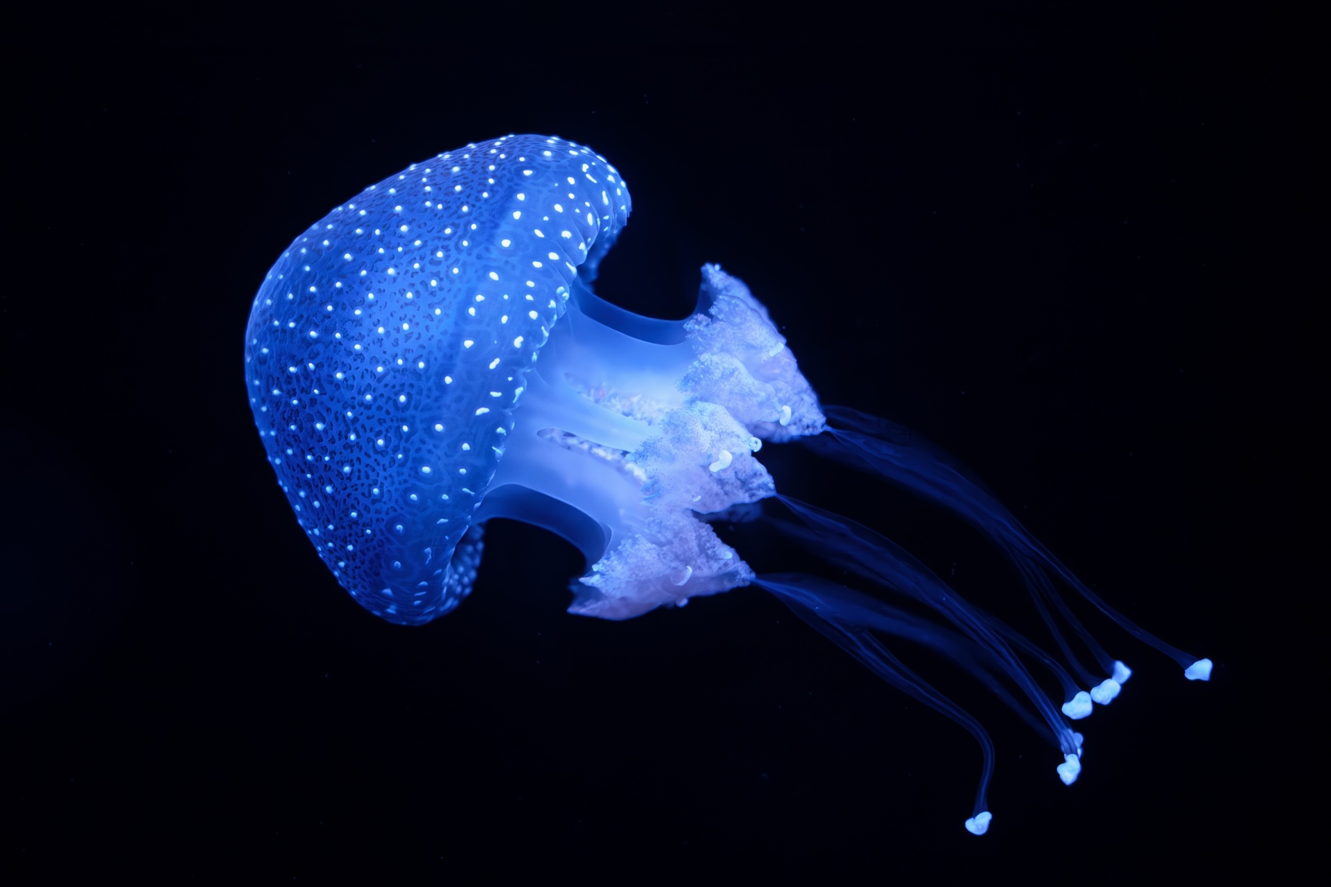 Lo stesso vale per altre specie di larve, funghi e per molti abitanti degli oceani profondi come la spaventosa rana pescatrice, alcune specie di calamari e molte specie di medusa. Proprio nelle impenetrabili oscurità oceaniche poter produrre luce chimicamente non è solo una questione di stile ma un’arma evolutiva che permette di attrarre prede, distrarre i predatori o camuffarsi dallo sguardo delle creature che si annidano ancora più in profondità.