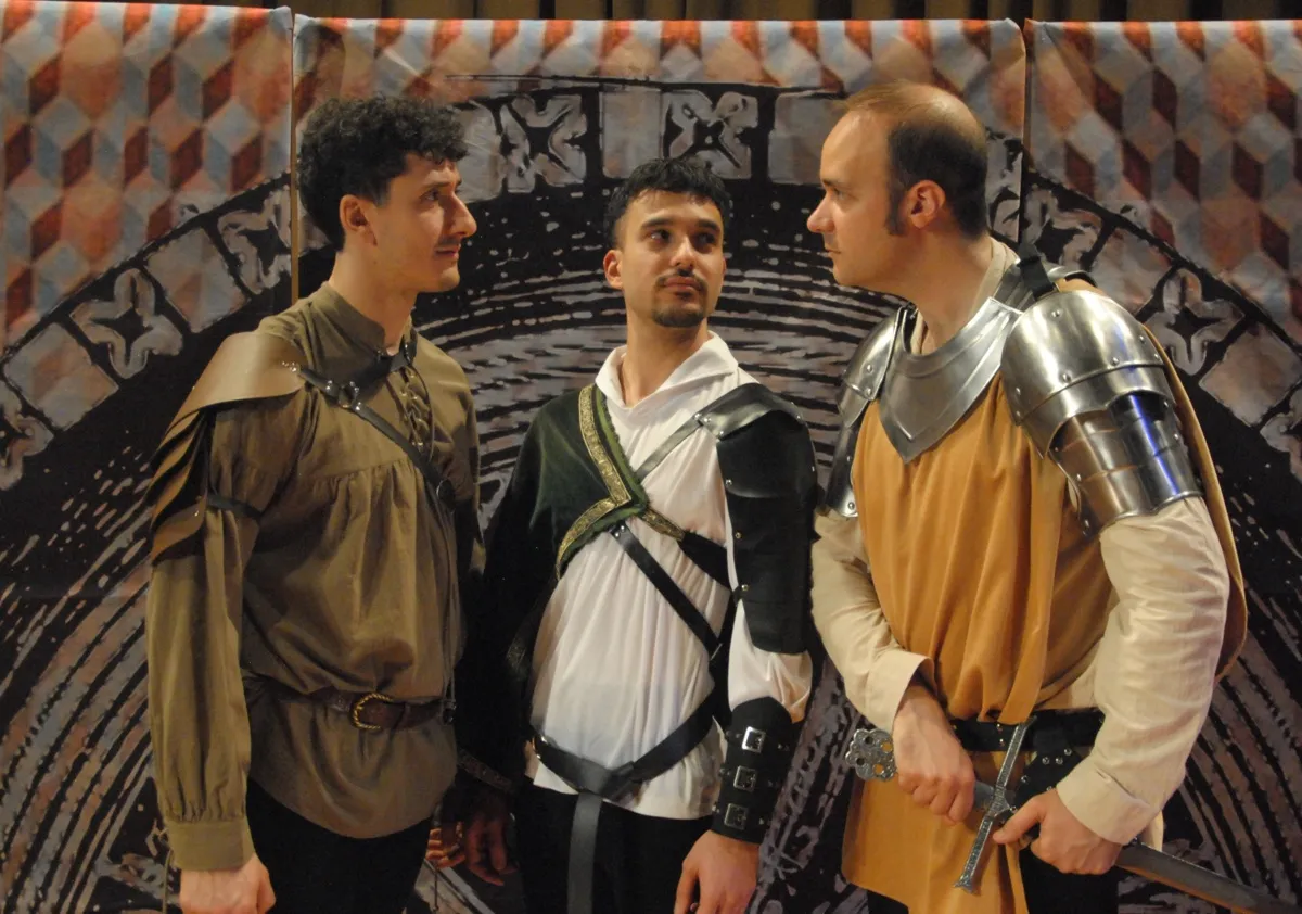 MG: L’idea era già “in pentola” da tempo, ma non c’era mai stata l’occasione giusta per portarla in scena: richiedeva un grande impegno, anche produttivo. Quest’anno, però, ricorrono i 550 anni dalla morte di Bartolomeo Colleoni, e diverse associazioni del territorio bergamasco, in particolare «Pianura da Scoprire» e «Terre Colleonesche», hanno deciso di celebrare l’anniversario con una serie di eventi. Abbiamo preso contatto con loro circa un anno fa e, avendo riscontrato interesse, abbiamo iniziato a lavorare allo spettacolo. In un solo anno mettere insieme uno spettacolo da zero non è facile, ma questa è stata l’occasione perfetta per raccontare una figura a noi cara. Come compagnia siamo molto legati a Bergamo: abbiamo una vocazione culturale oltre che teatrale, e lavoriamo spesso con visite guidate teatralizzate. Unire divulgazione storica e arte scenica è, per noi, l’apice del nostro lavoro.