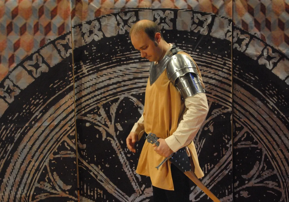 MG: Abbiamo scelto di concentrarci sugli ultimi trent’anni della sua vita, mettendoli in scena in forma drammatizzata. Ci siamo basati su studi approfonditi, cercando di rimanere il più fedeli possibile alla realtà storica. Il primo atto racconta la sfida che Colleoni si pone per diventare Capitano Generale delle milizie venete: è già un affermato condottiero, ma vuole ottenere il bastone del comando. Raggiunge questo obiettivo, ma il secondo atto mostra la parte successiva della sua vita, quando l’Italia entra in una fase di pace e lui, uomo votato alla guerra, deve reinventarsi. Raccontiamo quindi il suo invecchiamento, il confronto con la perdita della moglie, della figlia Medea, dei compagni d’armi. È un Colleoni forte fino all’ultimo, capace di affrontare tutto con determinazione, anche quando la vita lo mette a dura prova.