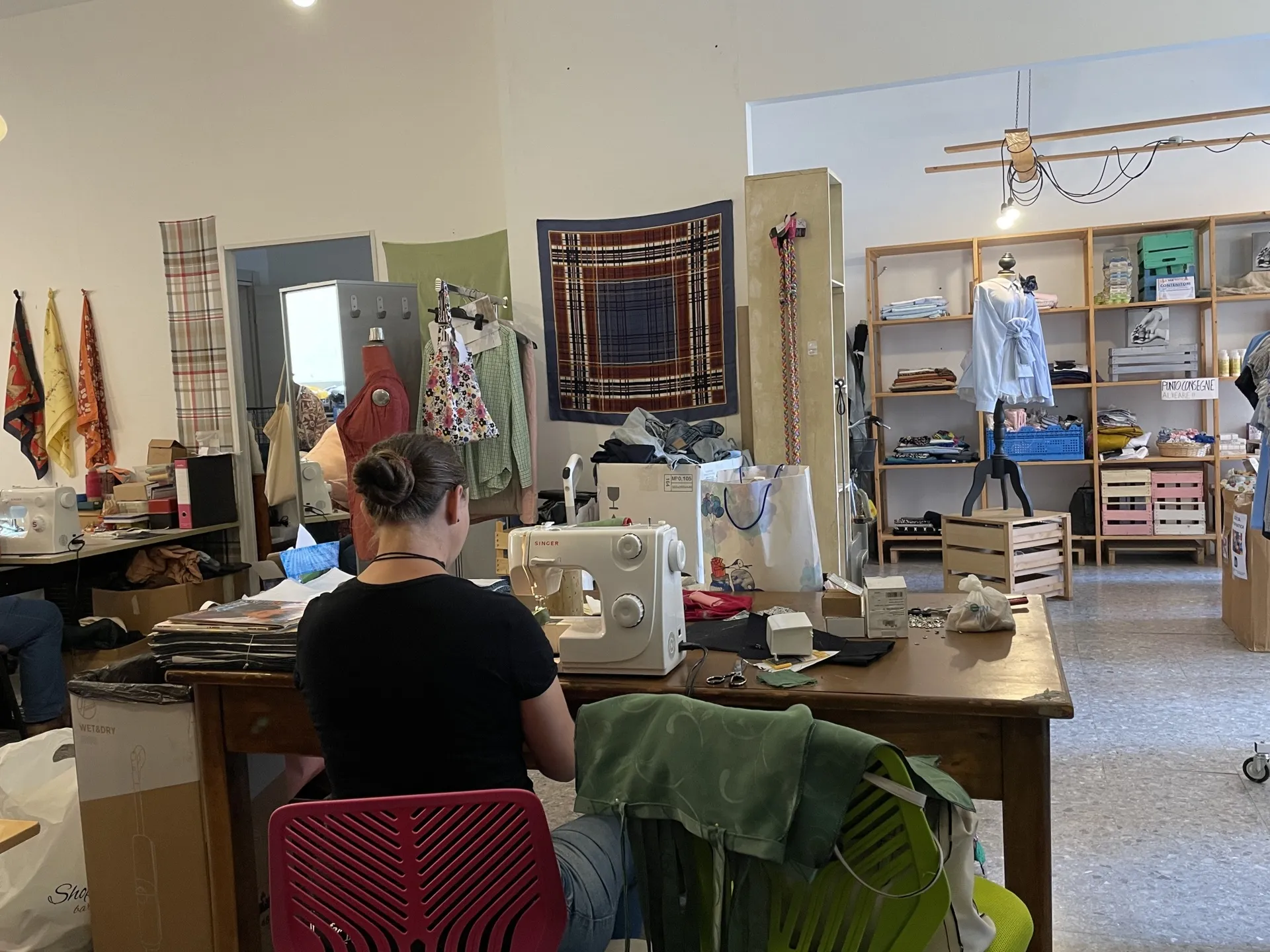 L’associazione La Terza Piuma nasce nel 2014 con l’obiettivo di promuovere progetti di economia circolare, ma è a partire dal 2017 che il progetto Dressing Piuma ha gettato le proprie radici sul territorio. Da un anno il laboratorio sartoriale ha una propria ragione sociale: un passo che ha permesso all’associazione di poter assumente le persone che fino a quel momento avevano lavoravano a titolo di volontarie. «Ora la Dressing Piuma ha a tutti gli effetti dipendenti, un laboratorio di produzione… e lavora!», spiega – non senza una nota di orgoglio – Alessandra Gabriele, la fondatrice de La Terza Piuma. Al suo fianco ci sono Erica, Adama, Elisa e Gloria che oggi lavorano come volontarie, ma che vorrebbero che Dressing Piuma diventasse a tutti gli effetti la loro occupazione principale.