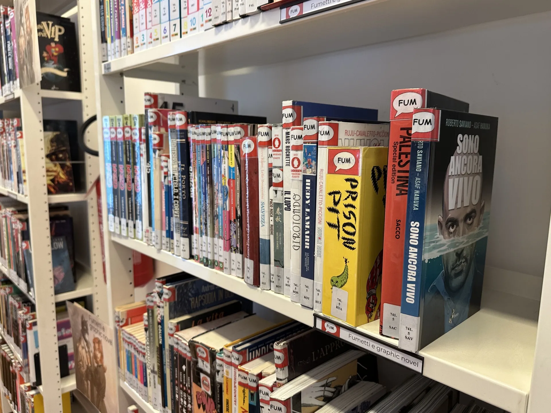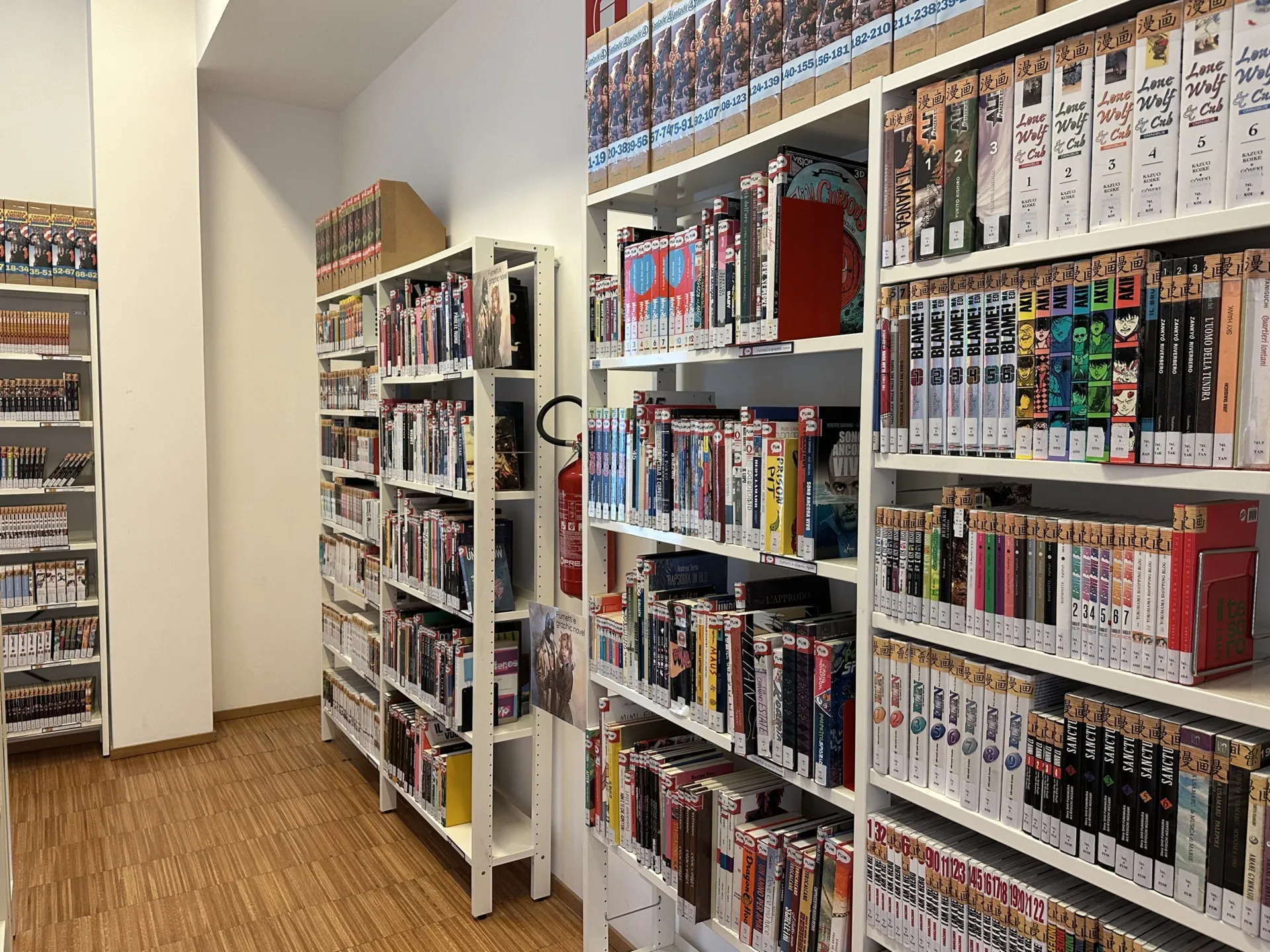 L’altra parte del lavoro è quella promozionale: per la maggior parte dei lettori in biblioteca i fumetti semplicemente non ci sono, perciò a chiederli in prestito sono ancora (relativamente) poche persone. Per risolvere il problema, le iniziative messe in campo sono numerose: da una parte c’è stata la partecipazione al «Comicon» di Bergamo - la Rbbg ha montato il suo stand sia quest’anno che nel 2024 - e dall’altra è stata realizzata una bibliografia su manga e fumetti che raccoglie e organizza i principali titoli disponibili in bergamasca. Bonini mi ha spiegato che si tratta di una bibliografia particolare: «È pensata per un pubblico giovane, perciò ha un formato perfetto per la consultazione da smartphone. Si può scorrere per passare da una sezione all’altra, tutte impaginate dal nostro illustratore. Per prenotare un manga o un fumetto basta toccare la copertina», continua l’intervistato.