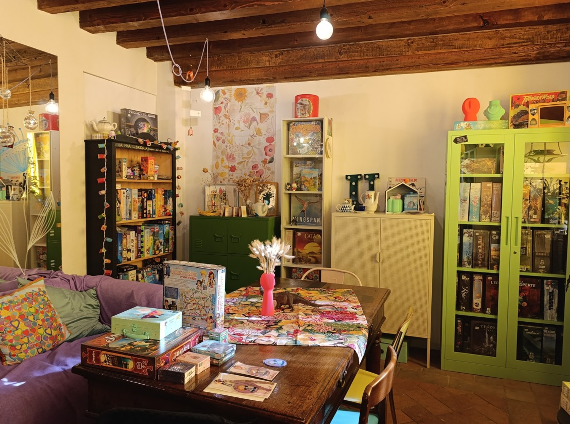 SS: Bisogna tornare al 2012. In quel momento il negozio nasceva come libreria per bambini, perché io arrivavo dal mondo delle biblioteche. Lavoravo nel reparto ragazzi della biblioteca di Clusone, quindi mi veniva naturale immaginare uno spazio dedicato alla lettura per i più piccoli. In quegli anni molte librerie iniziavano ad affiancare ai libri anche i primi giochi da tavolo “moderni”: titoli come «Dixit» o «Dobble!» erano tra i primi a diventare popolari al di fuori del loro giro di appassionati, e arrivavano proprio nelle librerie. Così il passaggio è avvenuto quasi da solo. All’inizio erano pochi giochi, poi sono aumentati, e io stessa ho iniziato a interessarmi. Il problema è che quando qualcosa mi appassiona, io ci vado dentro completamente: studio, provo, ricerco. Durante il lockdown del 2020, quando eravamo tutti in casa, la cosa è esplosa.