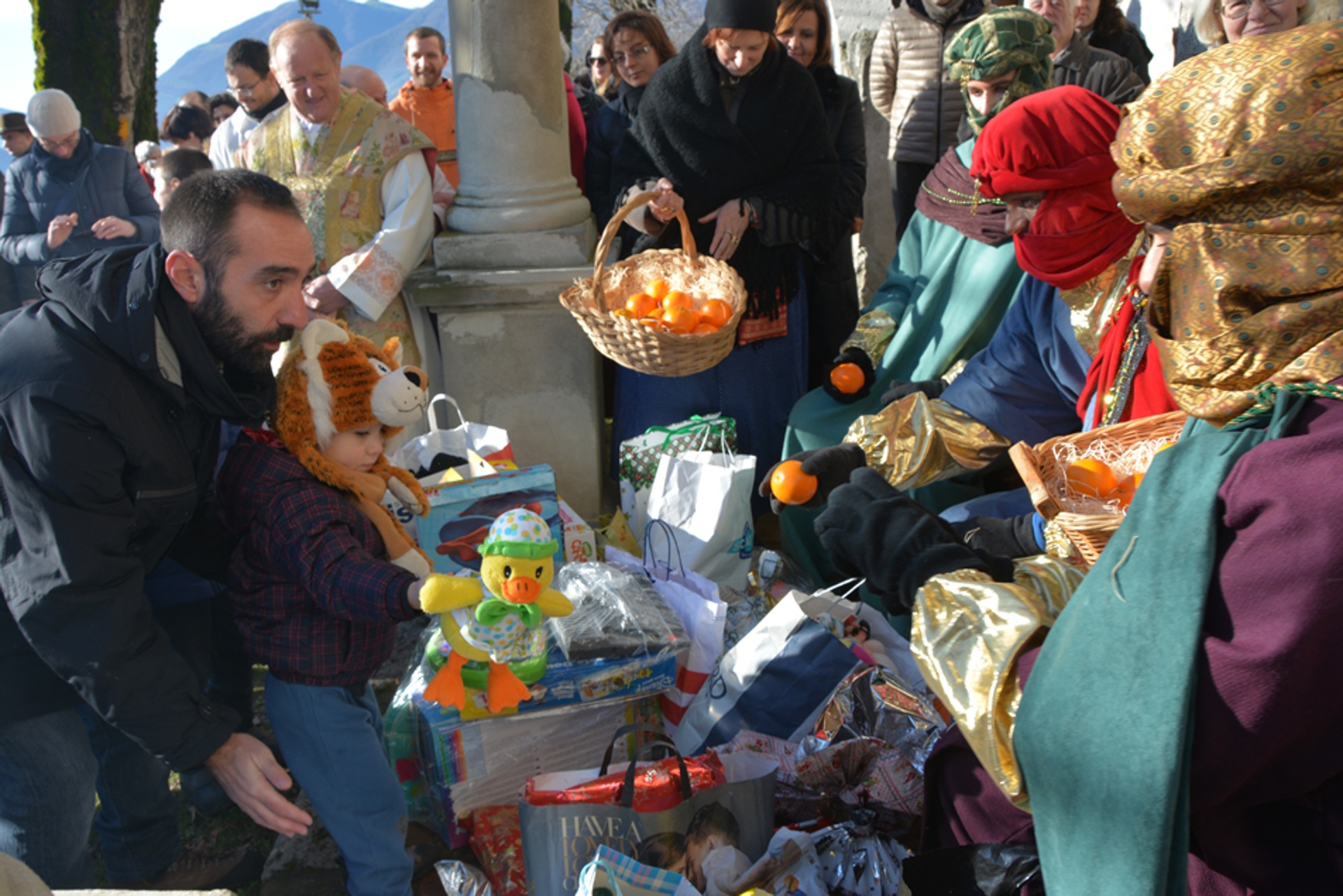 Martedì 6 gennaio, giorno dell’Epifania, la tradizione prosegue al Santuario con un gesto che unisce memoria e solidarietà. Dopo la messa, i Magi ricompaiono e sono i bambini a portare loro dei doni – dolci, alimenti non deperibili o offerte – destinati a coetanei più bisognosi. In cambio ricevono un’arancia. «Era il dono di lusso dei doni poveri di un tempo», ricorda Bonandrini, «un simbolo che abbiamo voluto mantenere».