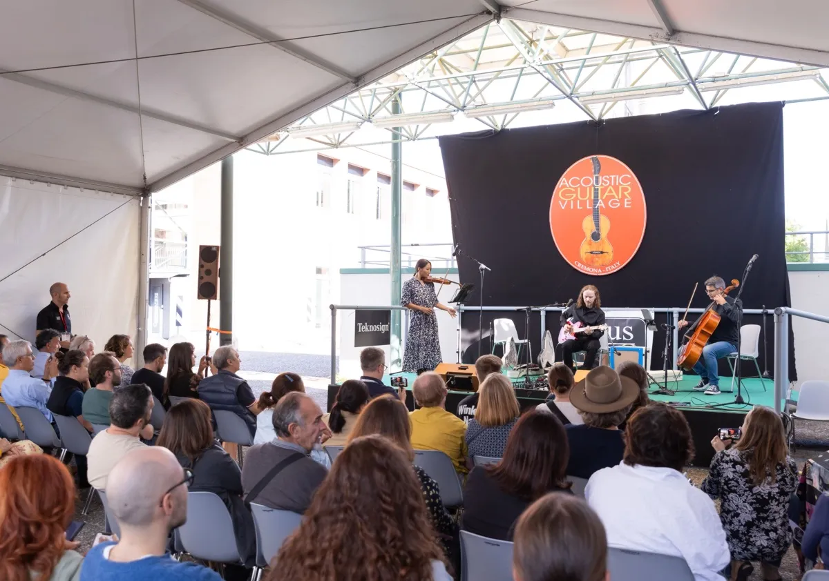 L’«Acoustic Guitar Village» presenterà un format dinamico che abbraccerà l’intero universo delle corde pizzicate: chitarre, mandolini, ukulele e charango dialogheranno attraverso masterclass specializzate, esposizioni storiche e seminari d’eccellenza. Particolare rilievo assumerà l’ottavo Convegno «La Chitarra in Italia tra Ottocento e Novecento», curato da Francesco Taranto, mentre il live stage ospiterà due eventi di grande richiamo: l’«Italian Bluegrass Meeting» del 27 settembre, coordinato da Danilo Cartia, con la partecipazione speciale dei The Matching Ties, con Paul Stowe & Trevor Morris (USA-UK), e il nuovo «Cremona Gypsy Jazz Meeting» del 28 settembre, un tributo sentito a Django Reinhardt che vedrà protagonisti ensemble di caratura internazionale come Fapy Lafertin Trio.