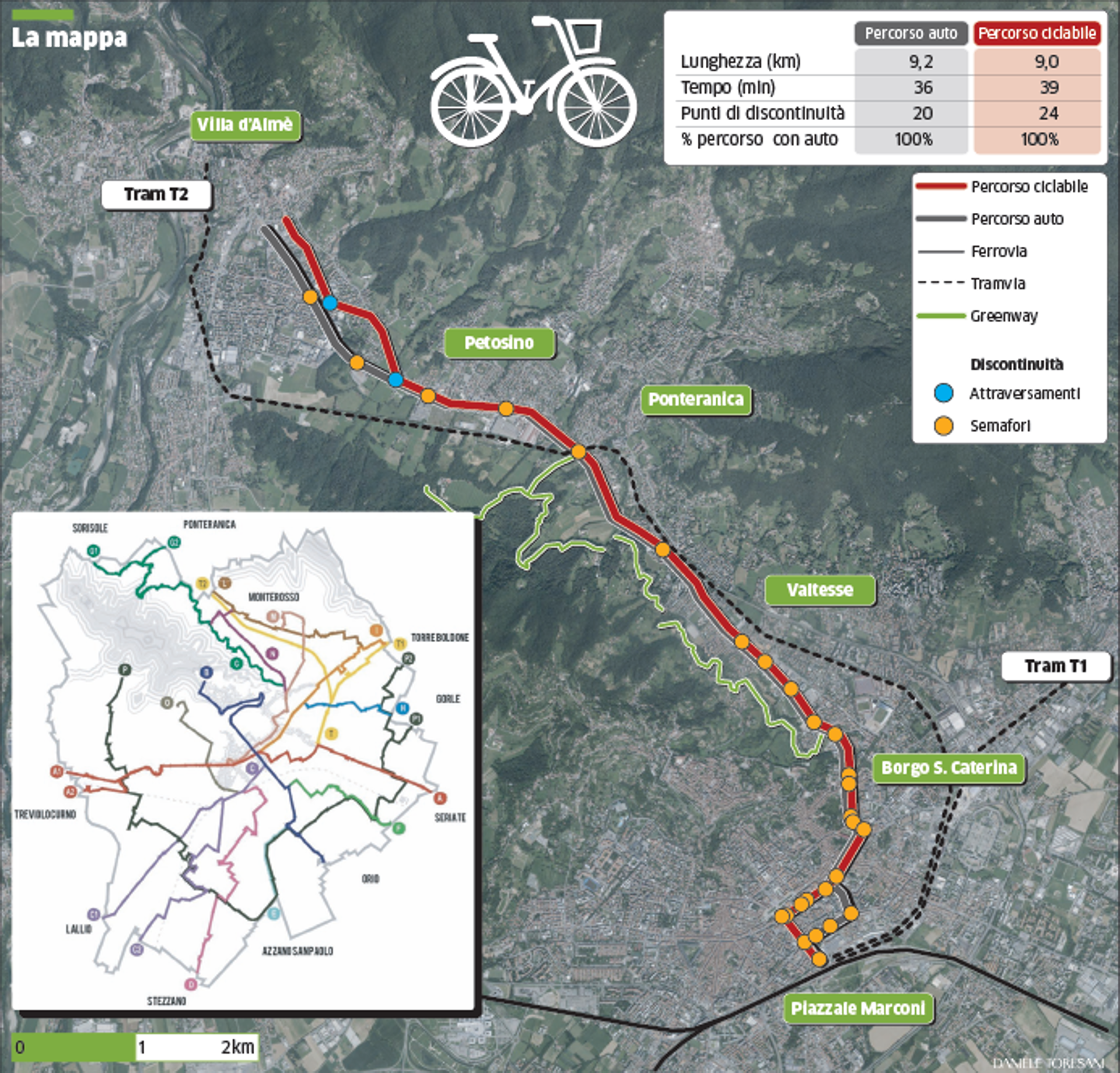 - Da Villa d’Almè a Bergamo in bici, un asse (per ora) critico per la Val Brembana