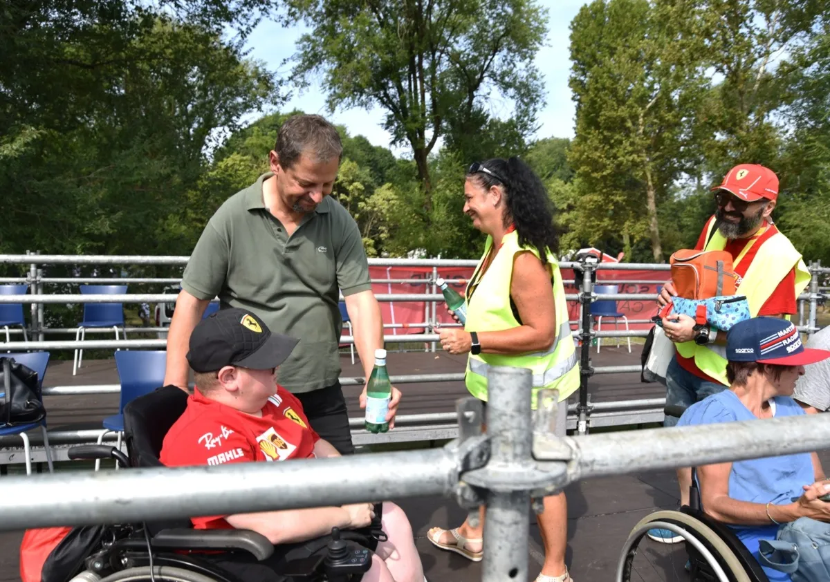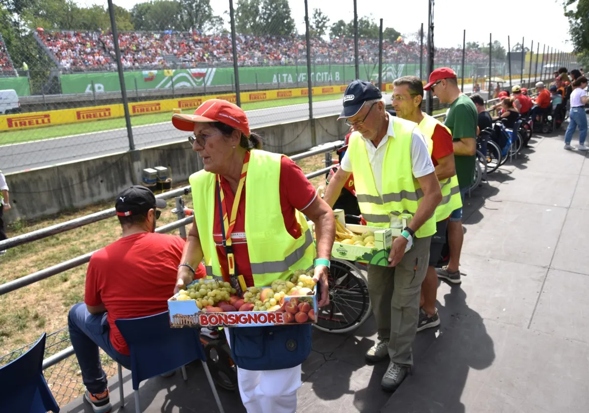 «Oltre alla partecipazione con lo Scudo Ferrari – aggiunge Giulio – noi ci attiviamo per agevolare l’ingresso dei soci e abbiamo in gestione una tribuna completamente riservata alle persone diversamente abili. E questo è uno dei nostri fiori all’occhiello, poiché ci occupiamo di ben 400 persone disabili il venerdì, sabato e domenica. Li accogliamo al parcheggio e li facciamo accomodare in tribuna, dove offriamo acqua minerale e frutta fresca. La direzione dell’Autodromo Nazionale di Monza ha rinnovato la fiducia affidandoci questo incarico che, pur gravoso, ci riempie di orgoglio. Il servizio è gratuito ed è reso possibile da una squadra di soci volontari, selezionati in base alle loro attitudini e sensibilità».
