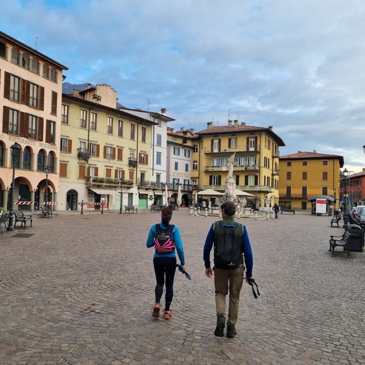 I nostri zaini sono osservati speciali: in effetti poco c’entrano con l’eleganza della piazza centrale e le acque increspate del lago. I bar alzano le saracinesche e ci intrufoliamo in quello che pare aperto da più tempo: «Ecco dove sono tutti i loveresi!». Un buon caffè è quel che ci vuole. Riscaldati e ben colazionati, ci concediamo un giretto per le vie del centro storico: l’atmosfera del mattino loverese è morbidamente intrigante: palazzi signorili, torri massicce, antichi portali, chiese silenziose e scorci improvvisi sul lago, tutto ciò mette quiete nell’animo.