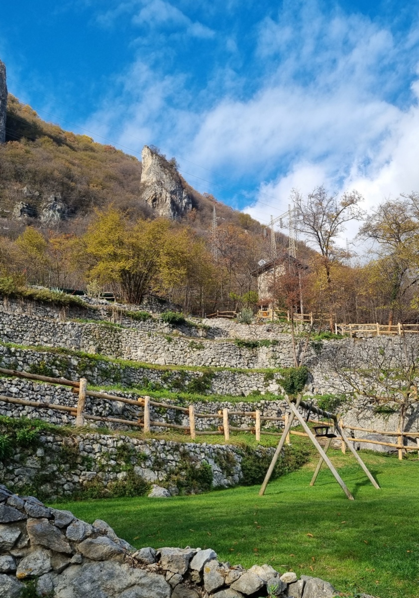 Per il rientro a Lovere scendiamo lungo la strada selciata, classica via di accesso a San Giovanni (sentiero CAI 552). Dopo circa 700 metri, poco prima delle case della località «Carassone» (420m), consiglio di deviare a destra sul sentiero che, procedendo in direzione Sud-Ovest, transita sotto le Corne di San Giovanni, ardite guglie calcaree che vigilano su Lovere e si ergono come fedeli sentinelle del Santuario di San Giovanni. Proseguendo per questo sentiero passiamo a fianco dei ruderi della fortificazione del Castelliere: una serie di muretti a secco, ben ordinati e di notevole estensione, fan da contorno all’ingresso del sito archeologico. La datazione certa risale al XV secolo anche se la tipologia di costruzione lascia intuire qualcosa di più antico di cui però non esistono testimonianze scritte né reperti. Restiamo sorpresi in particolare da quella che sembra l’entrata di una stanza: è sormontata da un possente architrave monolitico appoggiato e incastrato nel resto della muratura a secco.