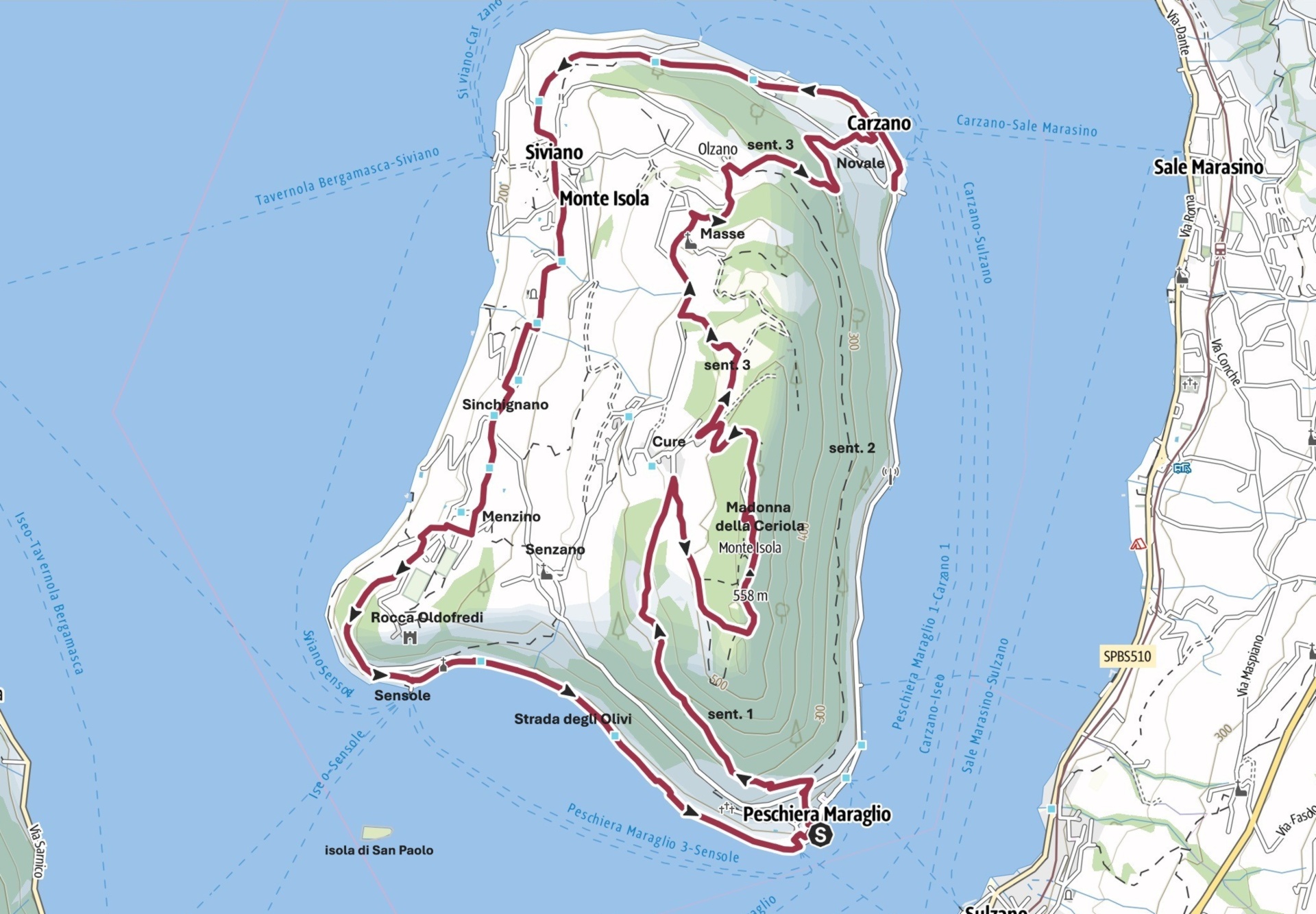 P.S. Monte Isola si presta per numerosi itinerari e deviazioni curiose, va visitata in totale libertà assaporandola passo dopo passo. Il percorso qui proposto è lungo 13 chilometri con 600 metri di dislivello positivo. Considerare che il periplo dell’isola è lungo 9 chilometri e che quasi da ogni punto dell’isola è possibile raggiungere la Madonna della Ceriola.