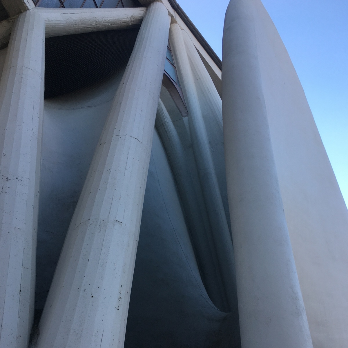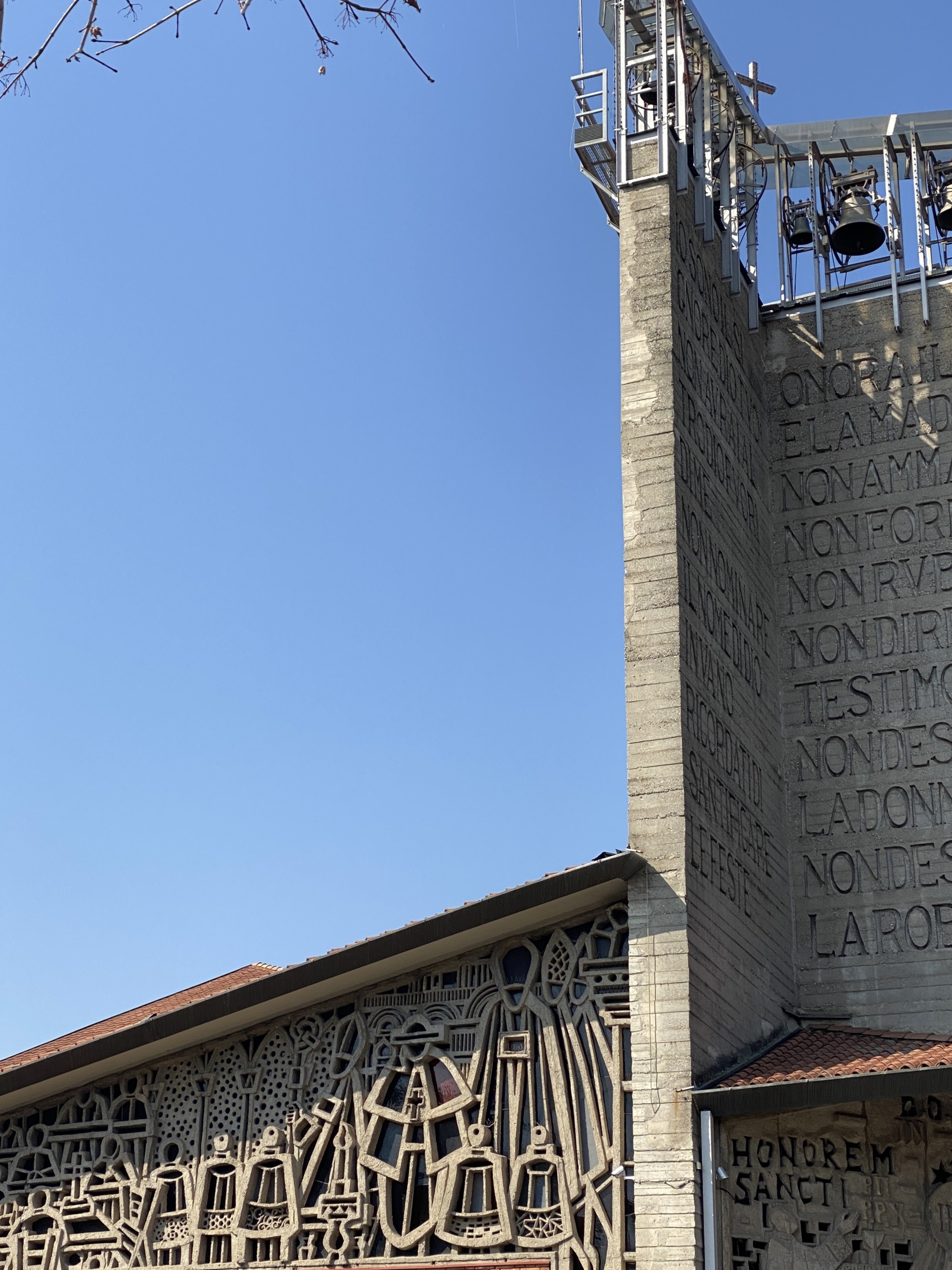 La chiesa, dopo anni, non cessa di stupire per la sua forma particolarissima, che rappresenta la tenda di Mosè. Per giungere a questo sorprendente risultato il Pizzigoni aggregò quattro volumi, ciascuno retto da cinque sottili volte di cemento armato spesso solamente sei centimetri. Vale la pena osservare la struttura da diversi punti di vista girandoci intorno, perché ogni prospettiva regala scorci nuovi, interessanti e anche parecchio fotogenici! È però obbligatorio entrare a sbirciare: una volta valicato il portale dai dettagli preziosi, che sotto alla volta bianca dell’ingresso pare quasi piccolo, i giochi di luce e ombre creati dalle linee curve e dalle vetrate colorate – opera di Mino Marra – favoriscono un’atmosfera molto raccolta e un certo misticismo. Il Pizzigoni morì l’anno dopo la consacrazione della chiesa di Longuelo, e anche se qualcuno ancora storce il naso, siamo davvero fortunati ad avere un’eredità tale in città!
