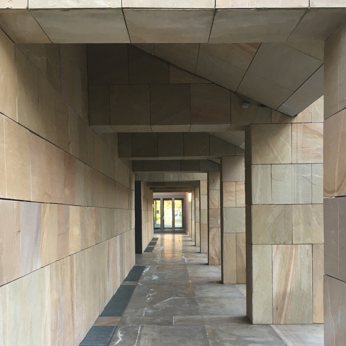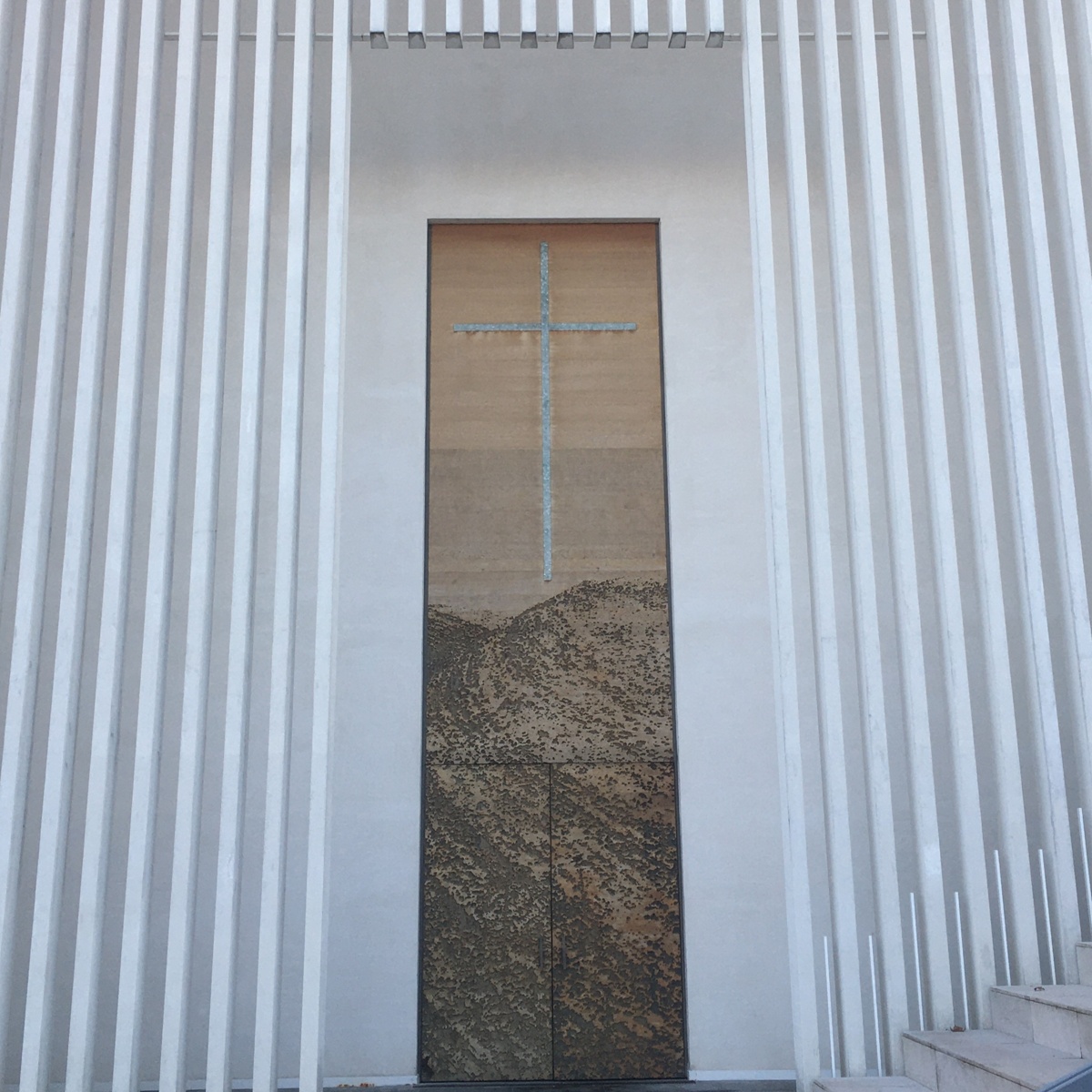 Il portale d’ingresso è stato realizzato da Stefano Arienti e raffigura un paesaggio reale giordano, fotografato dall’artista stesso, sopra al quale svetta una croce. Sulla fascia più bassa delle pareti interne Arienti ha riprodotto l’immagine di un giardino, ingrandita digitalmente e poi incisa direttamente nel calcestruzzo.