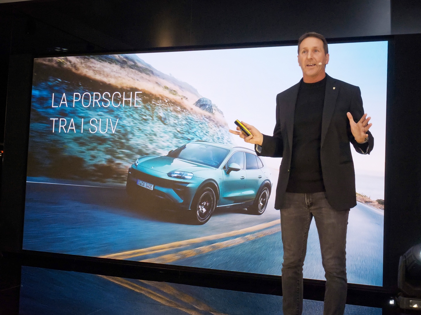 La preview di Cayenne elettrica è stata presentata da Max Busnelli, ex pilota e istruttore di casa Porsche che ne ha illustrato dettagli e punti di forza. A fare gli onori di casa Roberto Mancini, Brand manager del Centro Porsche Bergamo e il Direttore generale di Eurocar Bergamo (il nuovo nome che la concessionaria Bonaldi ha assunto da quest’anno) Gianmaria Berziga che ha ringraziato i bergamaschi intervenuti alla serata e ha invitato gli amanti del marchio e agli aspiranti tali, di venire a visitare il rinnovato Centro Porsche Bergamo che ha aperto le sue porte con nuovi eleganti spazi lo scorso ottobre 2024. «Tra le novità del centro i nuovi spazi riservati all’usato Porsche approved dove sono esposte le vetture che hanno superato con successo i 111 controlli del rigoroso protocollo Porsche. Oltre a questa novità i clienti possono godere dei servizi offerti dall’officina Service ufficiale Porsche più grande, più organizzata e con la precisione e puntualità garantite dal marchio tedesco».