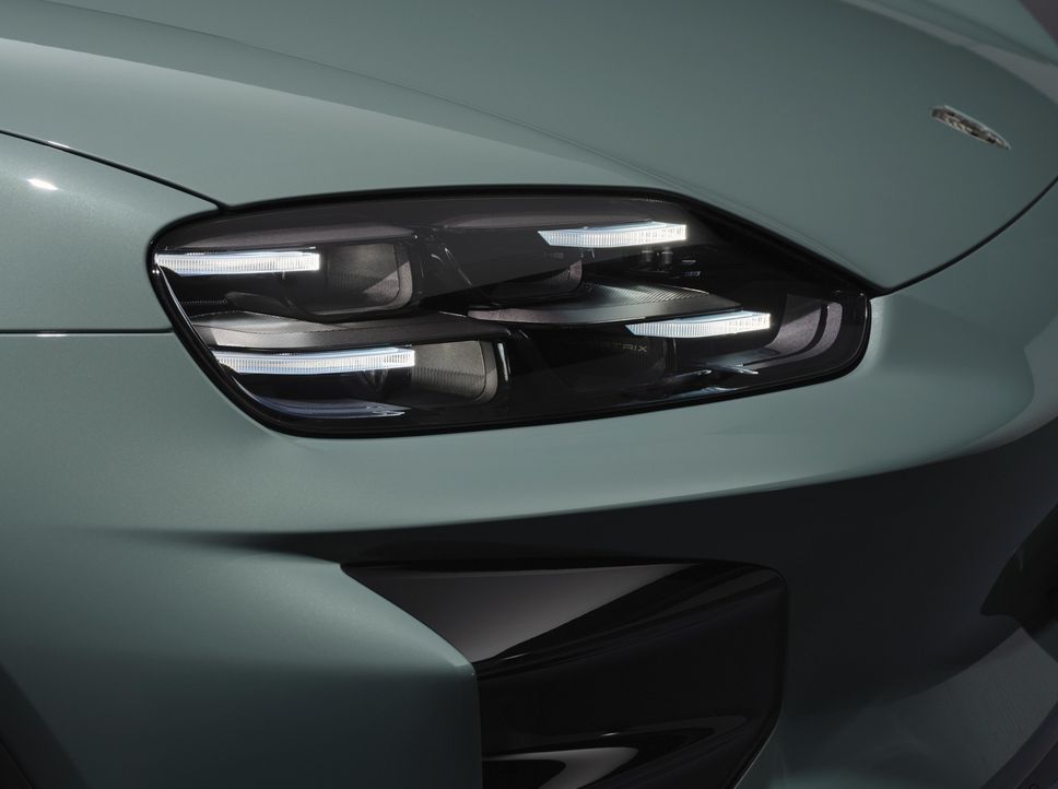 La Cayenne Electric unisce le proporzioni tipiche del marchio Porsche a un linguaggio stilistico decisamente evoluto. Tra gli elementi di spicco figurano il cofano ribassato e i sottili proiettori a Led con tecnologia Matrix, che enfatizzano la larghezza della vettura. Anche i parafanghi dal profilo accentuato riprendono lo stile tipico di altri modelli della Casa, al pari della flyline Porsche, l’iconica linea del tetto ad andamento dolcemente spiovente. Le fiancate si caratterizzano per le portiere prive di cornice e per la marcata increspatura che corre lungo la superficie di queste ultime. Le minigonne laterali hanno un andamento tridimensionale e sono verniciate in Grigio Vulcano metallizzato, mentre nella Cayenne turbo sono in nero lucido. Lo schema bicolore evidenzia le proporzioni sportive della vettura. Nella sezione posteriore spiccano dettagli di grande impatto come la fascia luminosa a effetto 3d e le grafiche animate, insieme alla scritta Porsche illuminata.