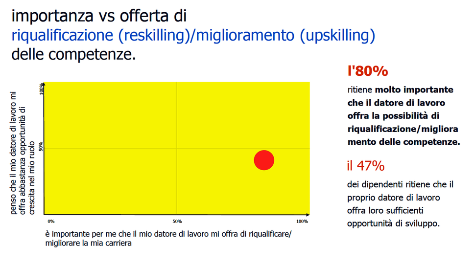 «È in atto un chiaro cambiamento di potere, dovuto al fatto che le persone riconsiderano le proprie priorità – spiega Marco Ceresa -. Le aziende devono riesaminare il loro approccio all’attrazione e alla fidelizzazione del personale, o dovranno affrontare una seria concorrenza”. E guardando alle imprese concorrenti per capire se ne vale la pena di spiccare il volo dalla propria azienda, i giovani talenti, ma non più solo loro, guardano ad almeno due fattori prioritari sugli altri. Non è più esclusivamente il livello di stipendio (che resta importante per il 61%) a far decidere. Ma prioritari sono il tema della crescita professionale (65%), e della riqualificazione e aggiornamento delle competenze nell’80% dei casi. Poi a seguire il resto, sempre comunque centrali nella capacità di attrarre o trattenere le risorse umane ed essere scelto come datore di lavoro. Sono gli elementi che contribuiscono a creare l’immagine di un’azienda come «great place to work»: