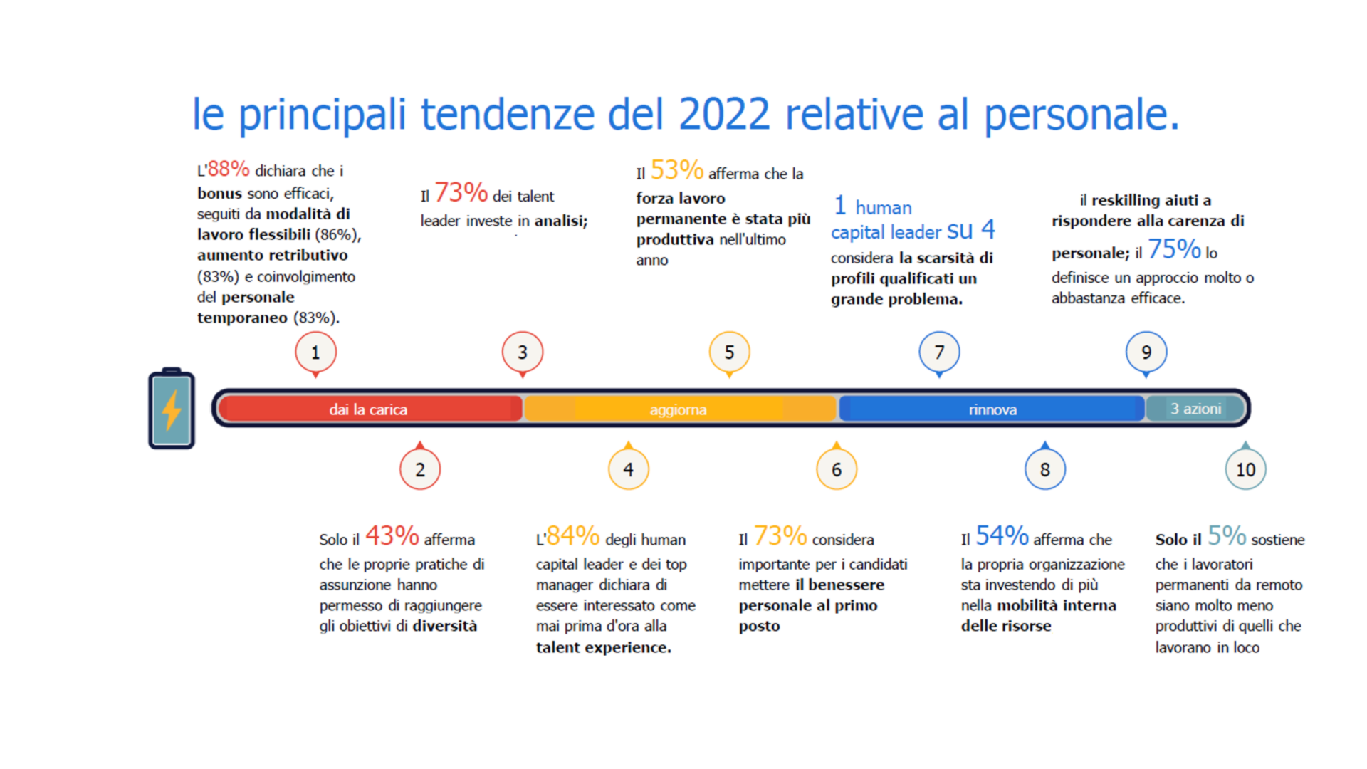 Lo stesso Talent Trends Report 2022 ha individuato nelle modalità di lavoro ibrido uno dei principali vettori per promuovere la determinazione, la creatività e la motivazione dei propri dipendenti dando loro la possibilità di organizzare il proprio lavoro come meglio credono.